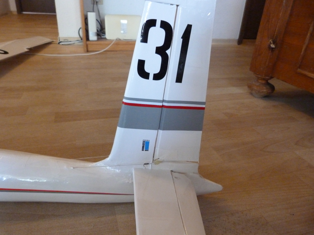 Eine Änderung zum Projekt - ich habe das Leitwerk mit einer Schraube von unten versehen.