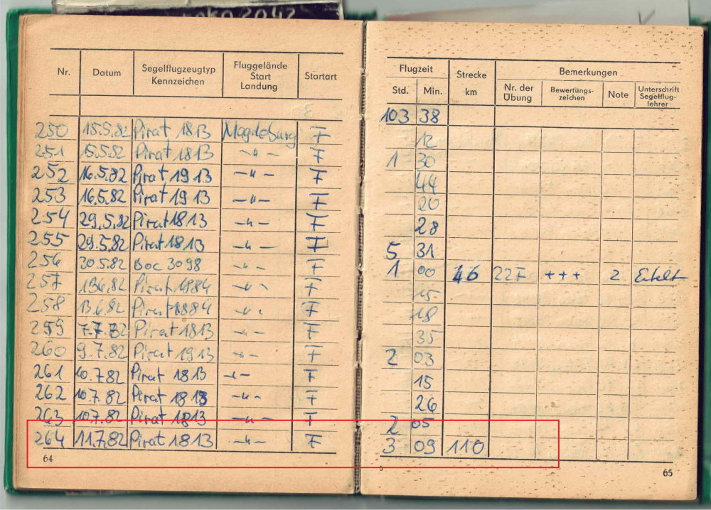 Pirat der Flieger mit dem ich am 11.07.1982 die SilberC Strecke geflogen habe.