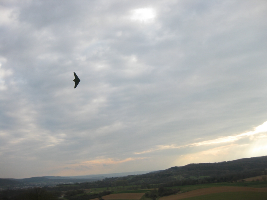 Dein Link zu der Dokumentation hat mich heute dazu gebracht meine kleine Ho IX an den Spessartseglerhang mitzunehmen und nachdem die Luft am Abend sehr ruhig wurde hab ich mich dann doch getraut sie wieder mal zu fliegen. Nachdem der immer kritische Übergang von der Start- in die Speedstellung geschafft war hat es dann mit Rollen und Tiefflügen auch wieder riesen Spaß gemacht und ich hab ein paar Selbstauslöser-Mützenkamera-Fotos geschossen: