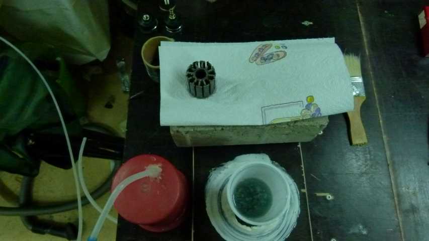 Nach verdunsten des acetons wird der Eisenkern heiß demontiert und nochmal gereinigt.