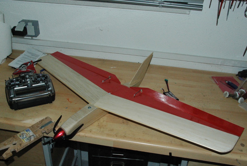 geführt, Ruder so mit Tesa angeschlagen dass die Ruder nach oben "verrutscht" sind,