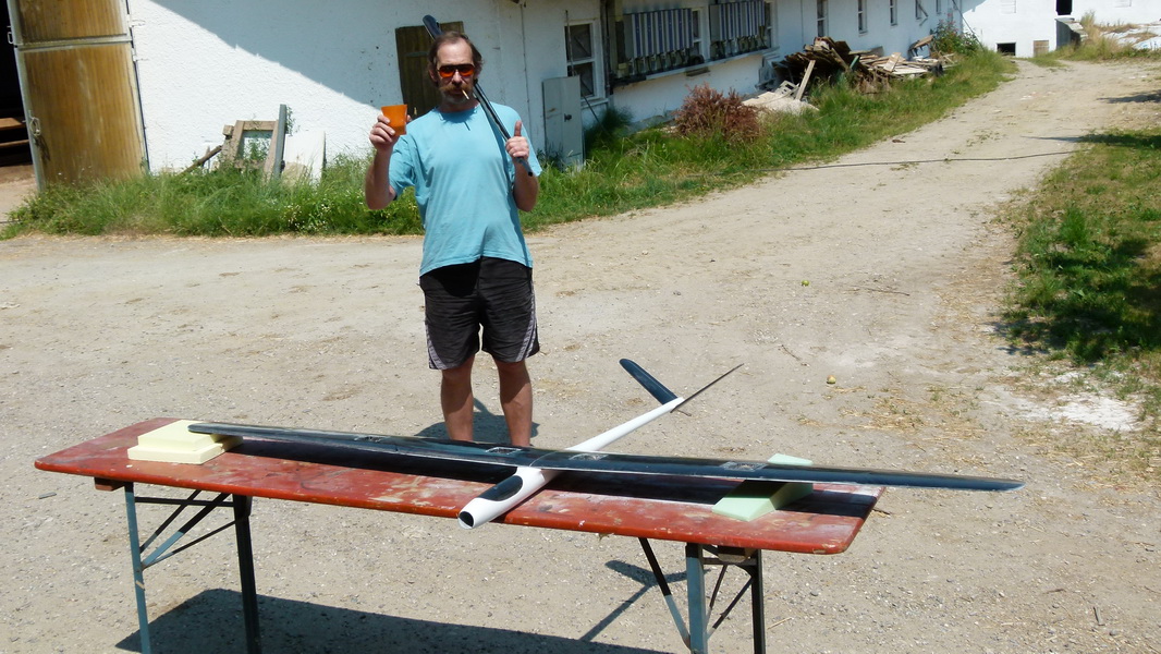 Glückwunsch! Nett schaut´s aus! ...was habt ihr da für eine Leitwerksaufnahme? Ist die von unten? Oder blick ich´s nur grad ned wegen dem ganzen Nahtsabberharz?