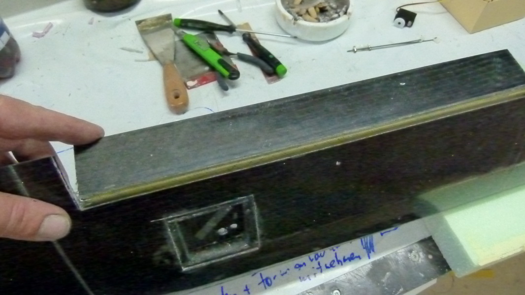 Ich hatte möglichst leicht zwar forciert , kam aber aufgrund der irre kurzen Tropfzeiten des Harzes bei fast 28°C nicht Harzsparsam ans arbeiten . Die Nähte sind demenstprechend Bescheiden bis Hässlich geworden, da 3 stunden nach laminier beginn fast nichts mehr ging das war schon alles am aushärten :roll: Hp E 110 konnte ich nicht verwenden da ich den Rest für die folgenden Tragflächen benötige.