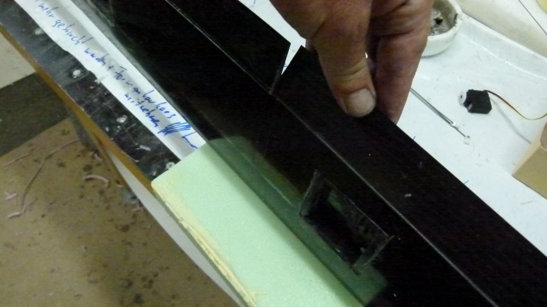 Die eine lage 150gr cfk Biax beidseitig abgeschlossen macht die Flächew aber derart wervindungssteiff das sie sich nur mit gewalt verdrehen lässt. Das obwohl dasHarz noch Zäh also nicht voll fest war. Jetzt ist ertmal Thermpern angesagt ..