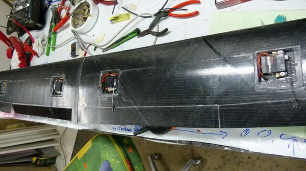 Den Servokasten, und die Ruderstege will ich nicht komplett killen , aus Stabilitätsgründen . Hinten wären für volle bremse und neagtiv wölben mit dem Hitec servo alle 3 stege komplett weg :roll: