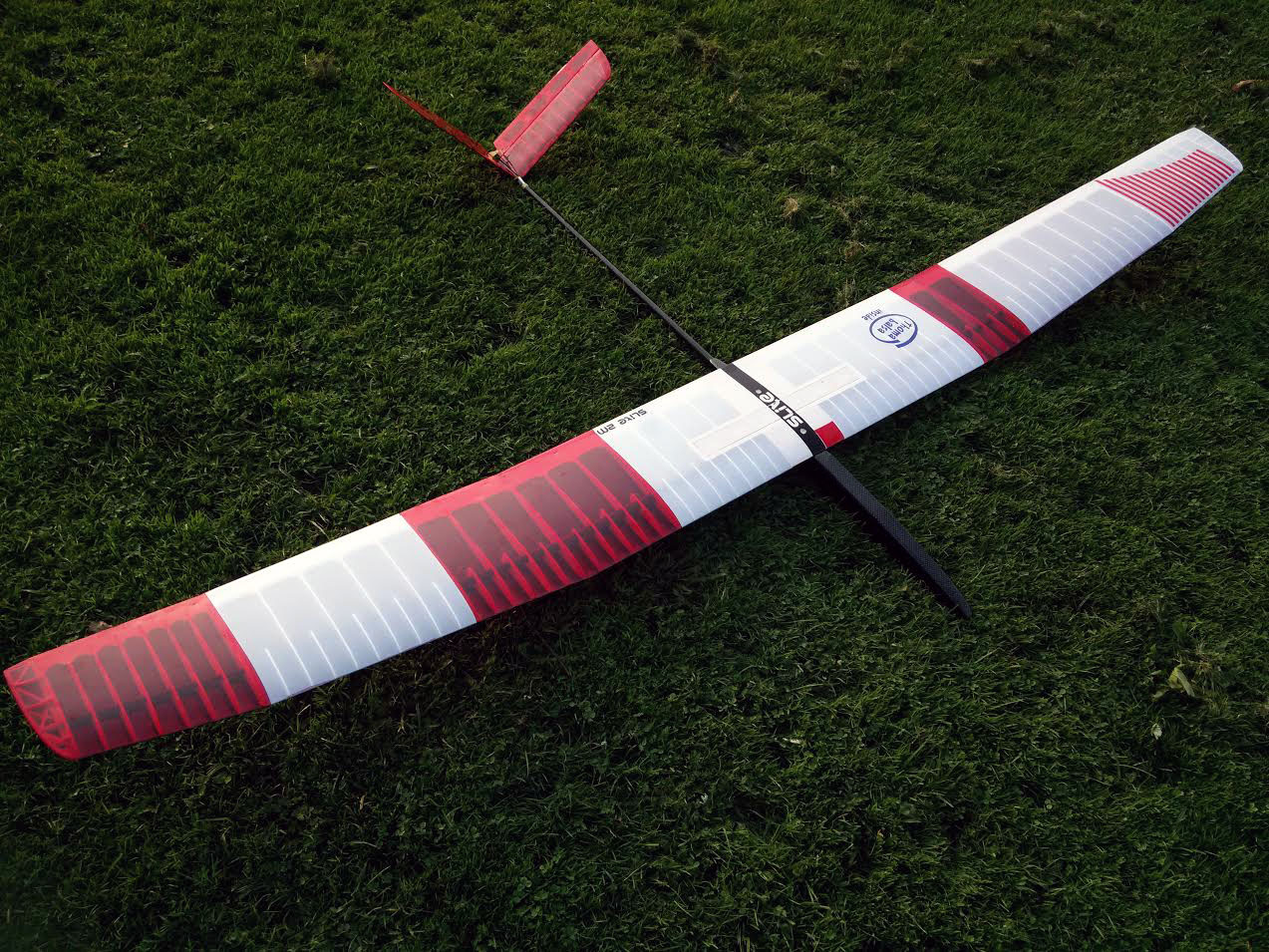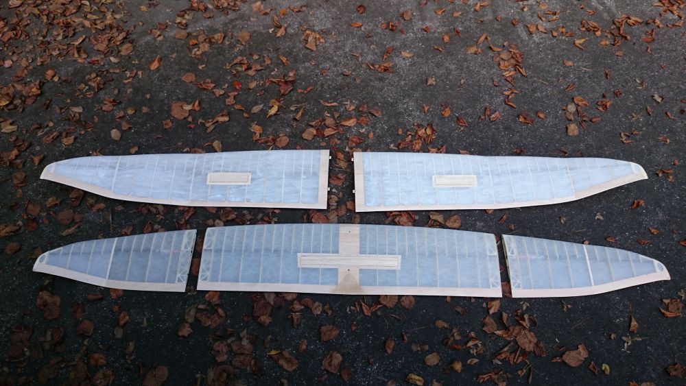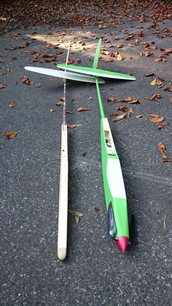 Diese 2 teilige Fläche wiegt samt steckung nur noch 195g und zusammen mit dem leichten Seglerrumpf kommt das ganze auf 367g Abfluggewicht.