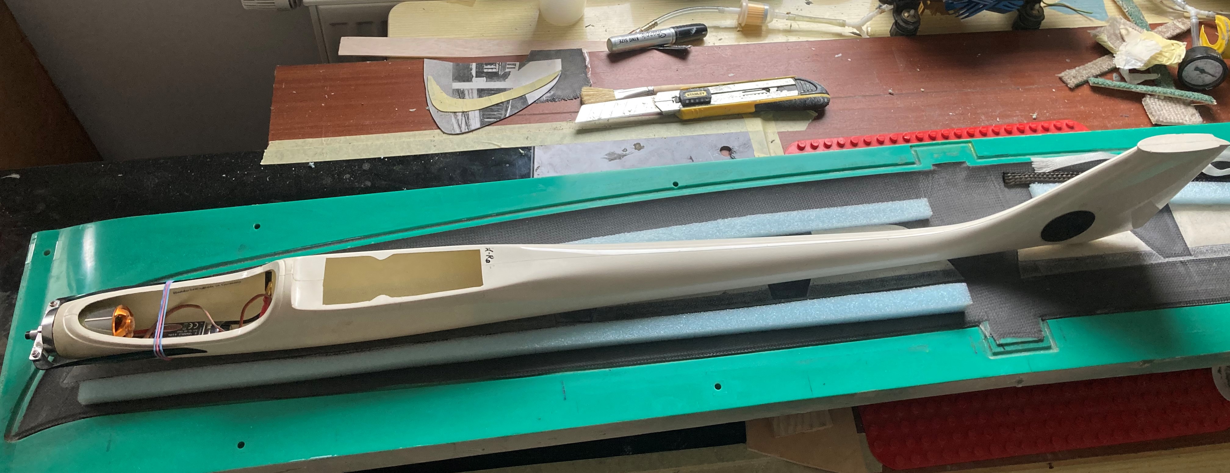 Einen alten Robbe K-Rat Rumpf habe ich noch der gut von der Größe zum Flügel past.