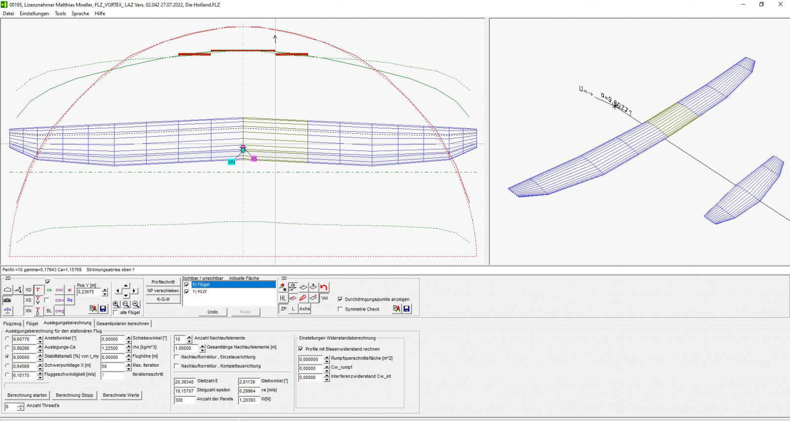 Jetzt kommt die große Frage ob der Strömungsabriss soweit ok ist oder ob ich noch an den Profilen "pfuschen" muss.