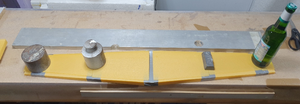 Also schnell die Kernchen verklebt und ein Verbinderchen laminiert. Ist schon witzig, sowas kleines, eher rudimentäres in der Größe eines normalen Höhenruders zu bauen, da braucht man für jeden Arbeitsschritt nur einen Bruchteil der Zeit, wie bei einem "richtigen" Modell.