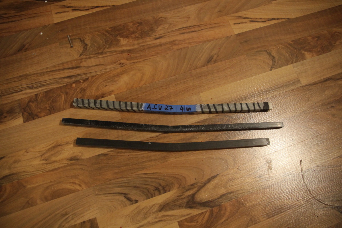 So, heute kam der 3. Verbinder aus der Form. Diese mal wurde mit den 24k Basalt Rovingen gearbeitet. Durch PCV Inlays wurde die Höhe des Verbundes, wie für die 3m Arschtier für Schorsch erforderlich, auf 13 mm reduziert. Die Breite blieb dabei mit 18,8 mm die Gleiche. Auch dieser Verbinder kam bis auf wenige hundertstel mm Abweichungen in der Höhe aus der Form... nach 0,5 min. Nassschleifen war alles erledigt = perfekt!