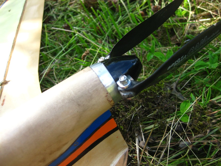 - Luftschraube Im ausgeklappten Zustand stützt sie sich am Spinner ab