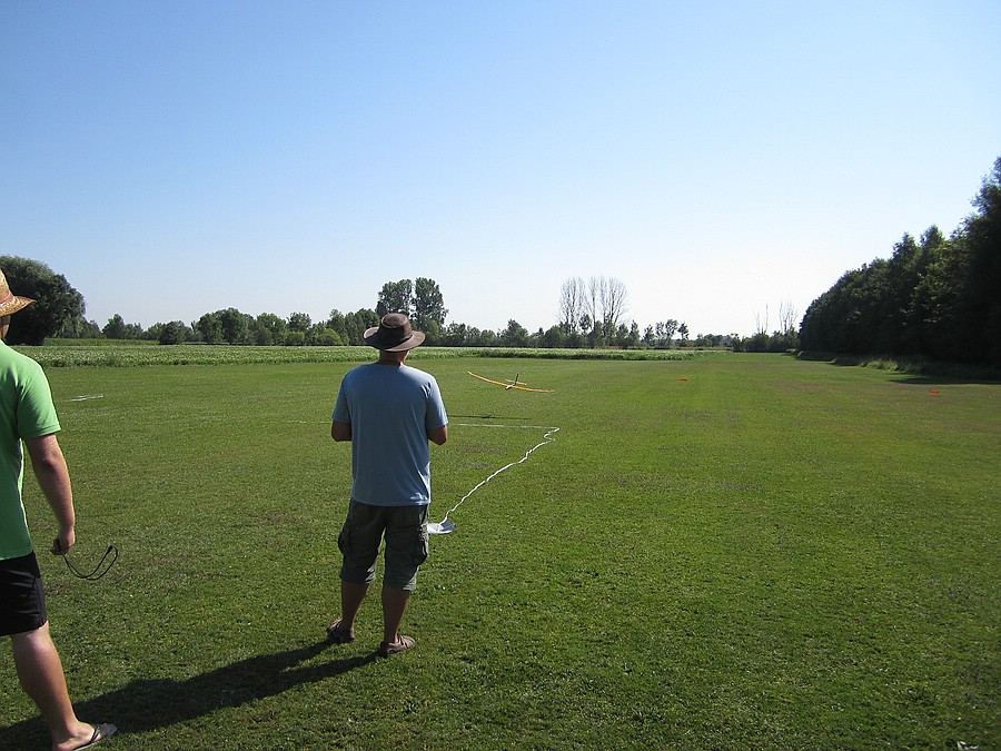 Schön war´s in Dachau! Zu schön!! Die Sonne brennt, der Pilot schwitzt. So viel konnte man garnicht trinken wie man ausgeschwitzt hat! Auf dem Platz stehen war wirklich kein Vergnügen. Auf dem Rückweg um 19:15 in Dachau immernoch 36°!! Nachmittags gab es zumindest ein bissl Wind, der für minimalste Erfrischung sorgte. Und mit dem Wind hatte ich mit meinem Friendltio auch wieder Chancen und wenigstens nach 3 besch... Durchgängen noch nen 1000er geflogen! Beim recht ruhigen Wetter am Vormittag absolut keine Chance gegen die teilweise über 300g leichteren Modelle!