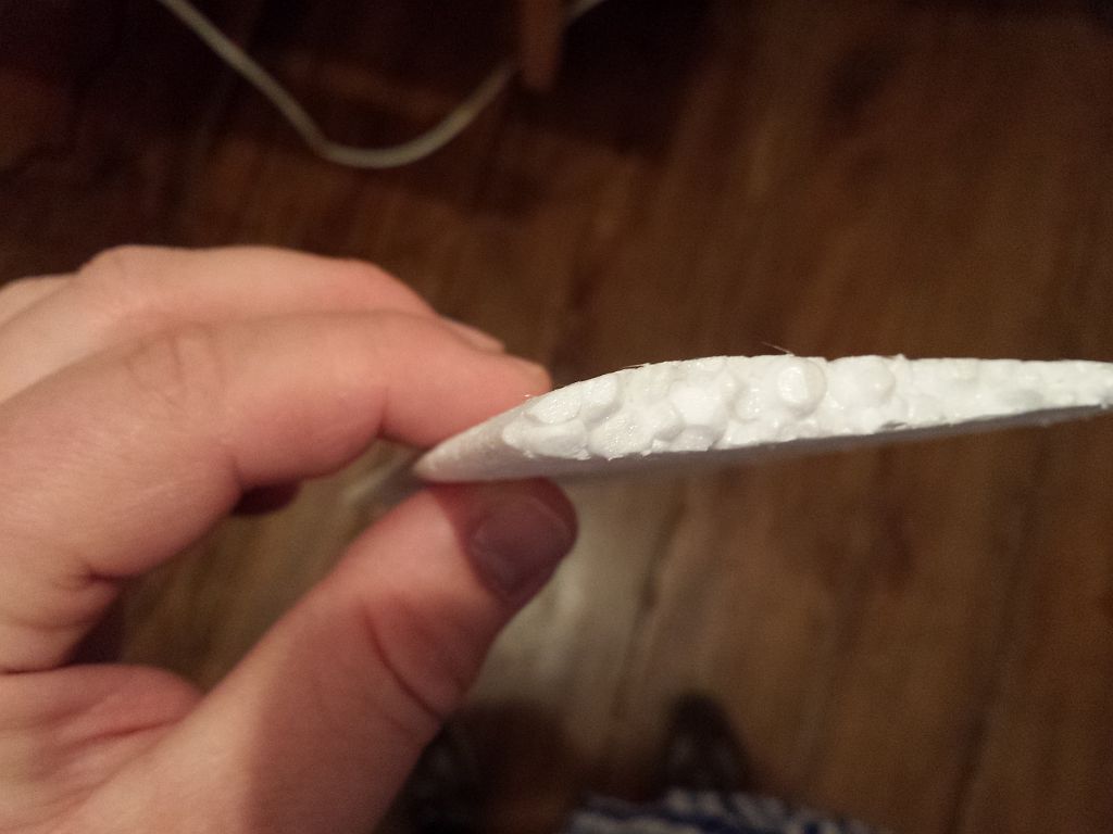 Bissl ein Elend ist der eingebaute Dreck des XPS... Um 4 Teile zu bekommen, haben wir jetzt 6 geschnitten. Aber im gesamten ist die Schnittqualität sauberer als bei Styrodur, wenn auch Fremdkörper, sprich Dreck, im Styro quasi nicht vorkommen.