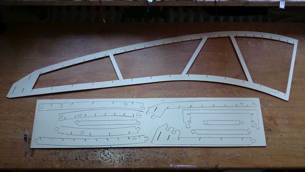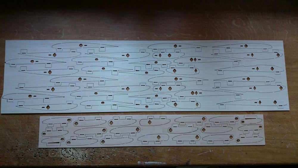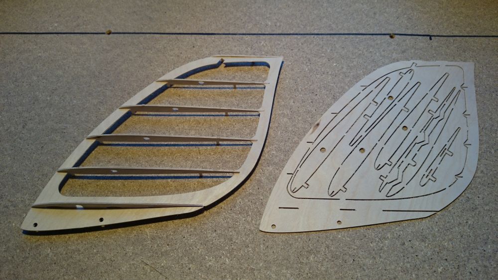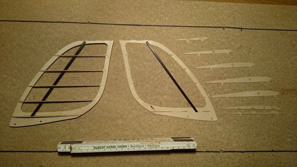 Beplankungsteile für Ruder, Endleiste und Mittelstück in 0,6mm Flugsperrholz