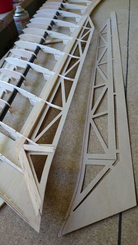Winglets mit Rippen in 1mm Sperrholz sowie Wingletfussfüllstücke und Bremsklappen aus 3mm Balsa