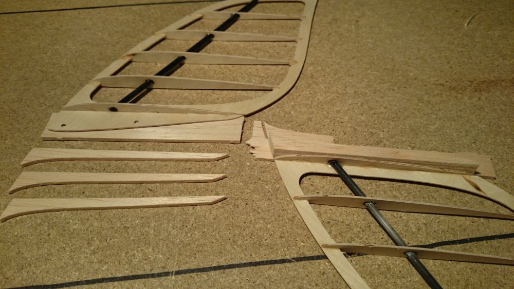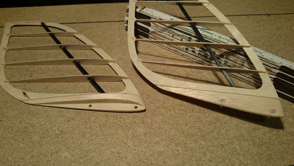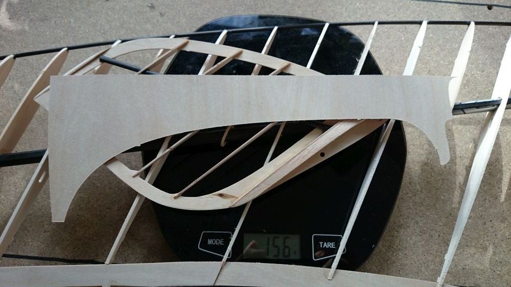 Wenn man aber nach der Materialmenge aus geht könnte es aber fast klappen. :mrgreen: Das cfk Material wiegt rein gefühlsmässig mehr als das ganze Holz