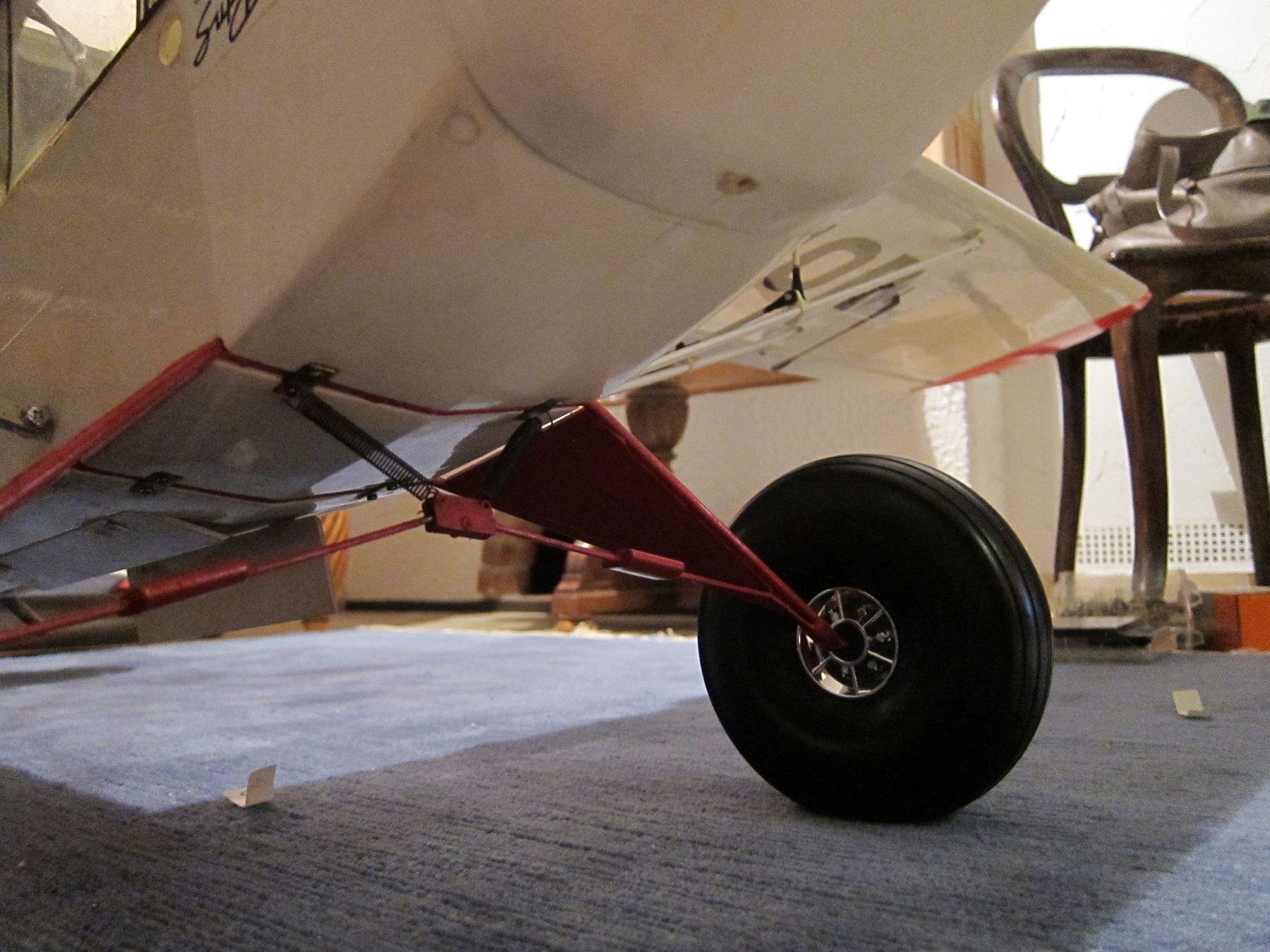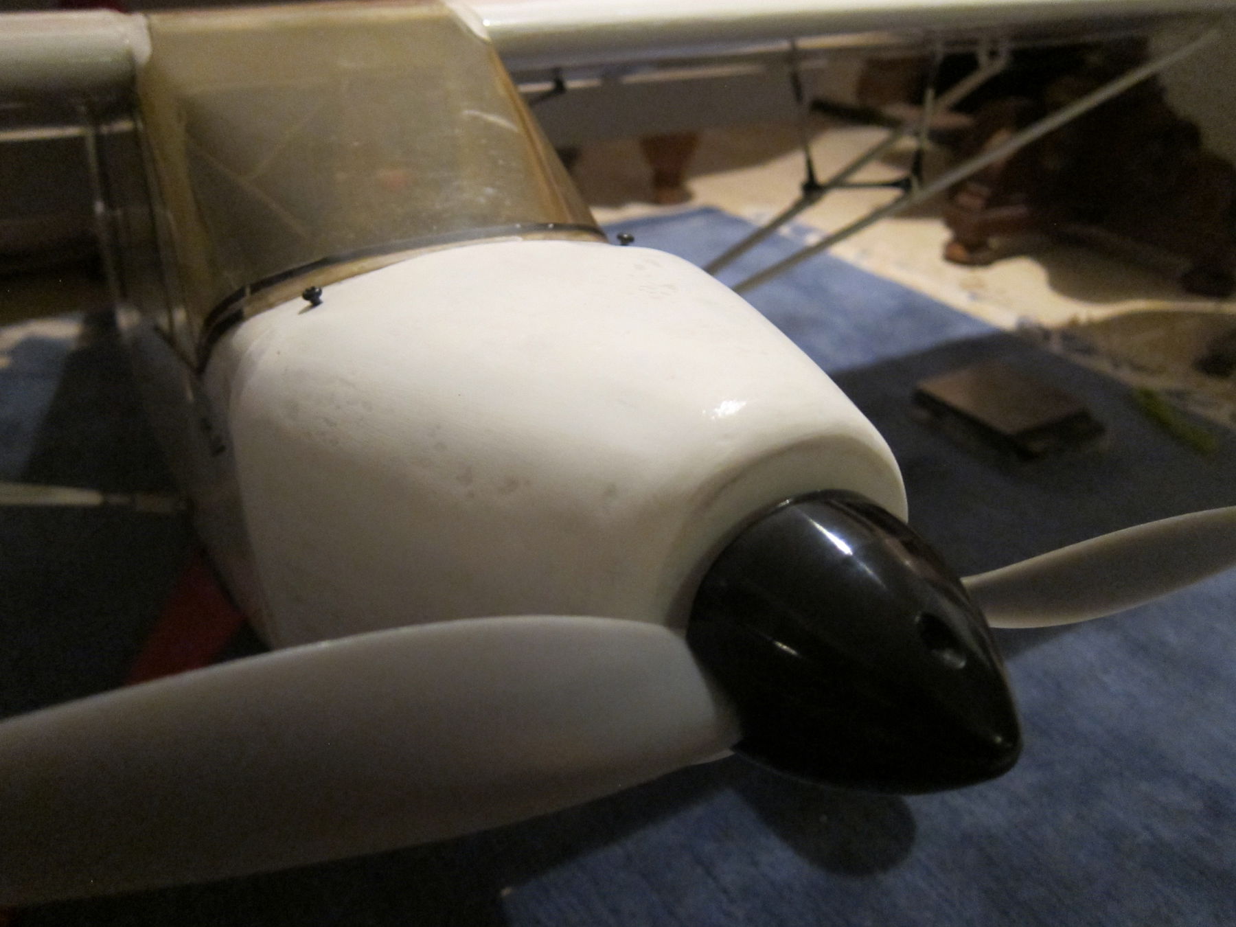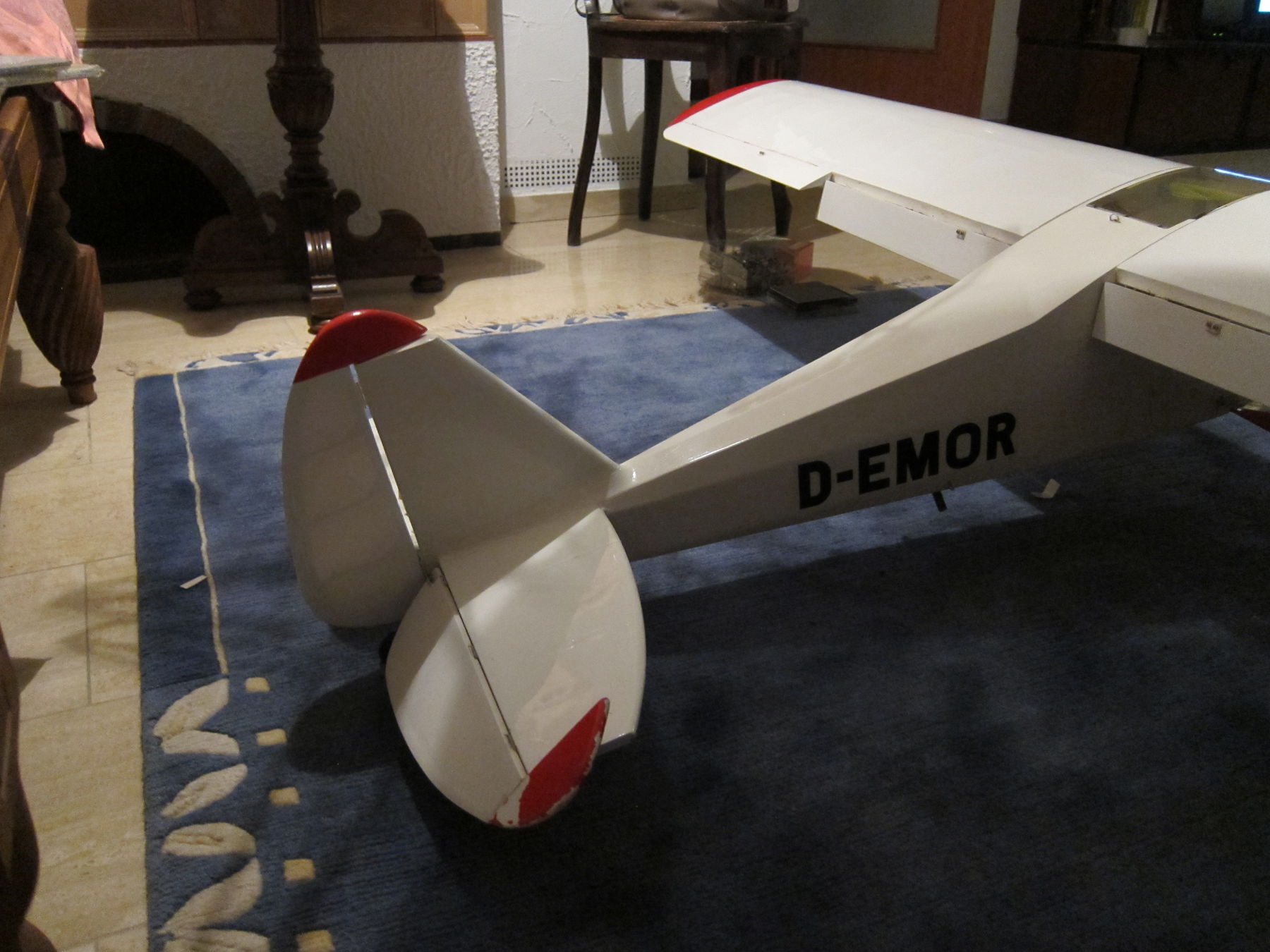 Wie man sieht ist noch ein bisschen was zu machen -- z.B. das Spornrad, und irgendwie muss der Akku wohl ein "wenig" weiter vor. Sonst könnte er nämlich nur direkt an der Firewall (etwa am Anfang der Motorhaube) sitzen. Das wär ... selbst mit 5800mAh 6S zu wenig um den SP hinzukriegen, und bei 4.2kg ohne Akku muss das nicht sein.