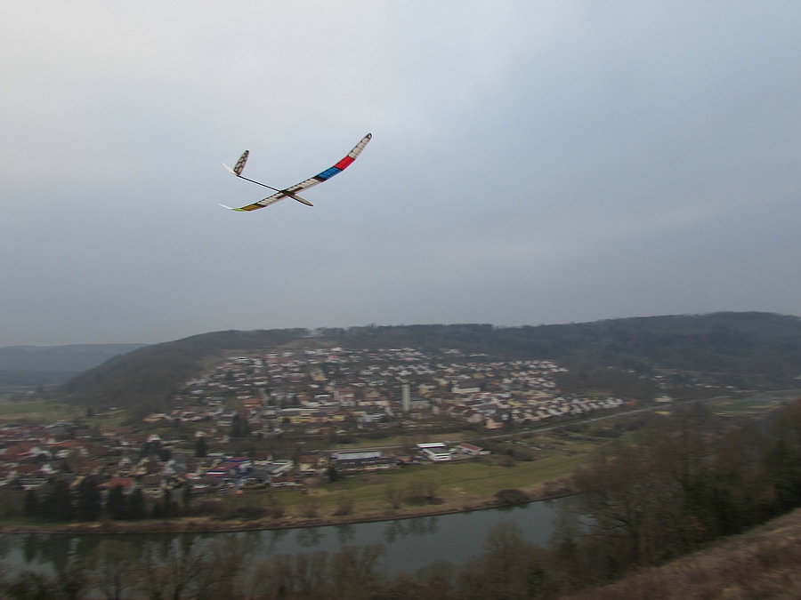 Danke für das Lob, ich war Gestern nach Feierabend noch mal bei ~ 0 - 0,5 Bft ein halbes Stündchen am Hang (1 Flug), das macht auch bei sehr schwachen Bedingungen viel Spaß, vor allem weil der Flieger für einen Zweiachser sehr direkt am Ruder hängt.....fast wie ein RES-Nurflügel