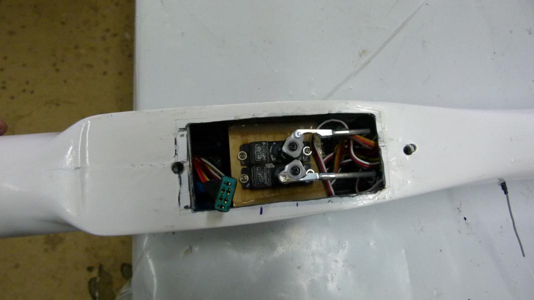 Glaube ja — die Ruderwirkung ist selbst bei sehr kleinen Ausschlägen zu groß, damit klemm ich am Servo ganz innen, und hab trotdem nur 50% Weg auf der Funke programmiert. Wenn die Ruder jetzt noch größer werden, denn wirds langsam ein Problem … wobei ich wenn ich die Ruder neu bau ja auch rieeesen Ruderhörner draufmachen kann — unschön, aber wenn das Ding aerodramatisch halt größere Ruder (mit mikro-Ausschlägen) braucht kann man wohl nix machen…
