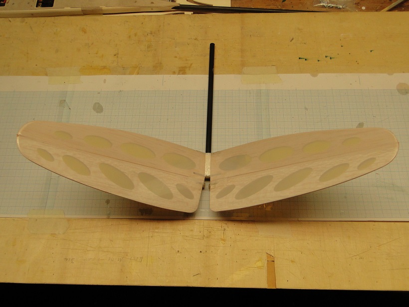 Das Bespannen ist in der Konstellation etwas tricky, Ruder und Flosse sind ja schon fest verbunden und können nicht einzeln bespannt werden.