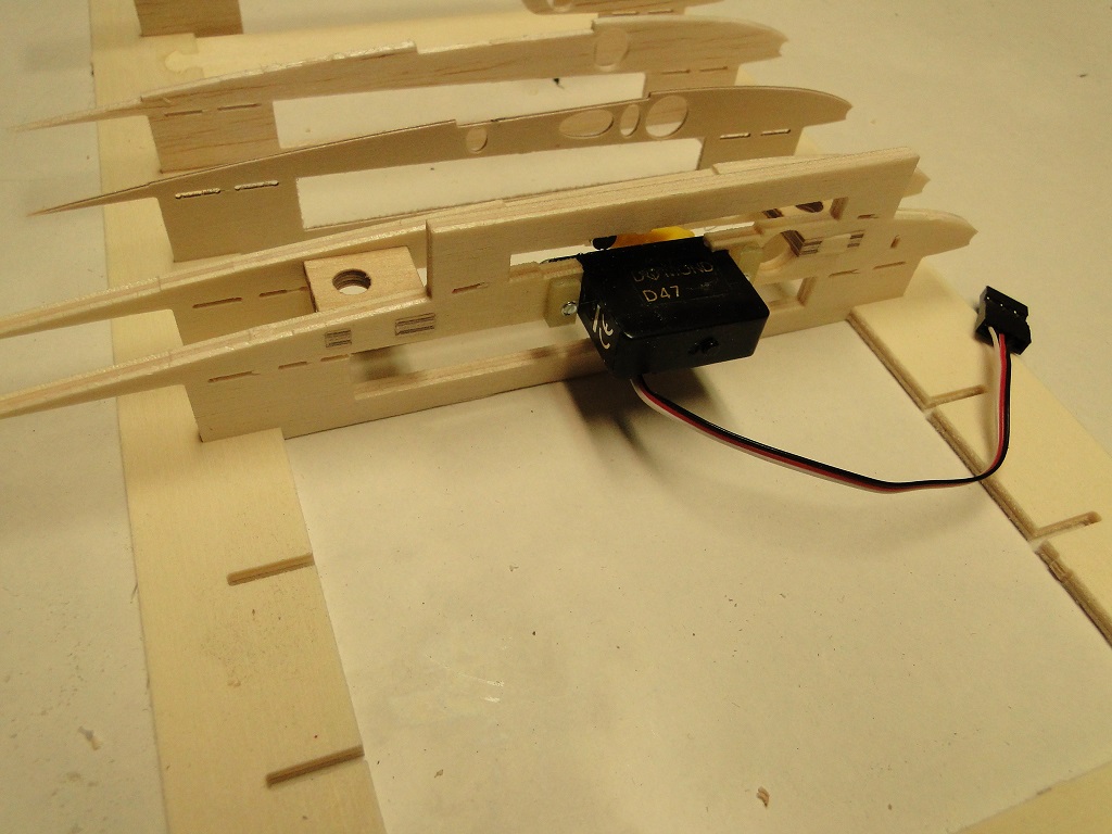 So, vom Mittelflügel habe ich nicht so viele Bilder gemacht. Hier der Einbau des Klappenservos.
