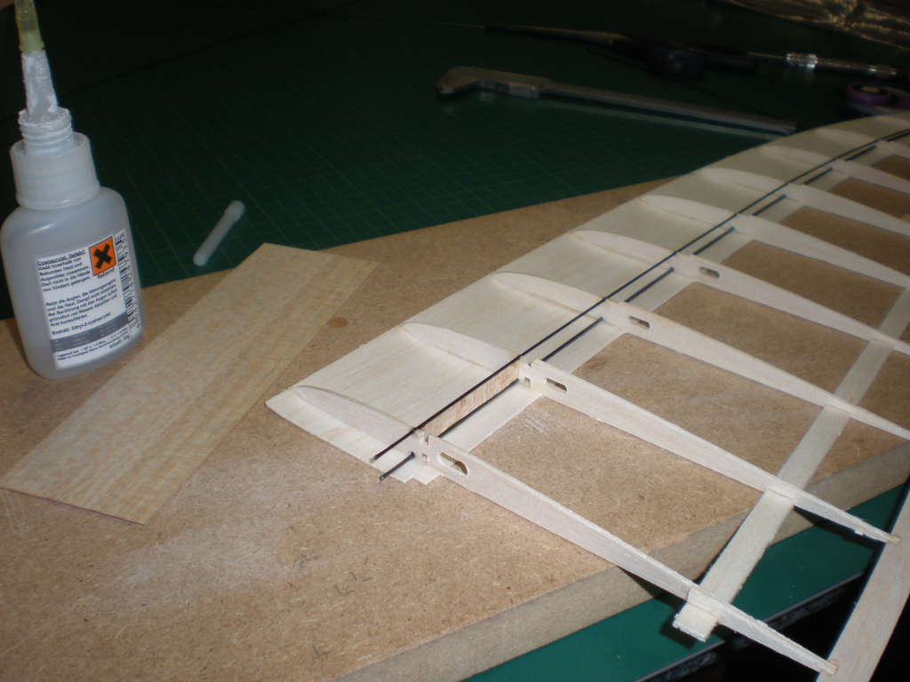 1. Die Rumpfseiten sind von der Nase bis unter die Fläche mit 1,5 mm Balsa aufgedoppelt
