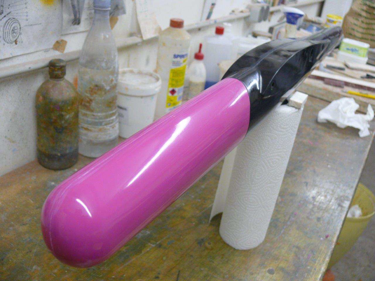 Der restliche Rumpf wird schwarz ist nur die Nase als Farbakzent, aber der Fluegel teilw. und die Winglets werden pink, Wird ein "Telekom" flieger :)