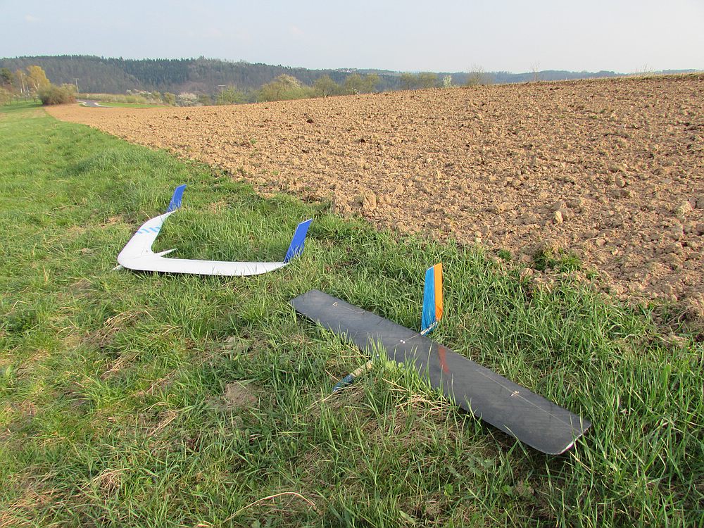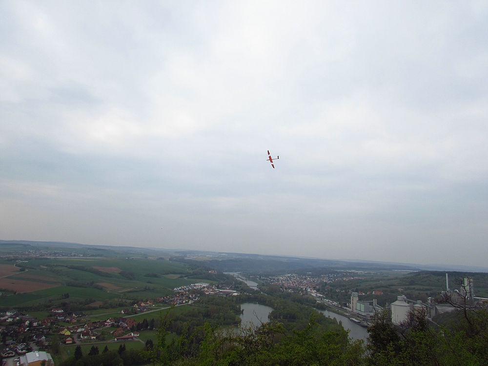 Heute hatte ich einen Tag Urlaub und hab den Nachmittag bei schönem Wetter und angenehmen Frühsommertemperaturen am Hang verbracht. Obwohl Windfinder für heute 1 Windstärke weniger voraus gesagt hatte waren die Bedingungen erheblich besser als beim Besuch von Gert und Sepp mit ihren Frauen Gestern, als wir vor allem die schöne Aussicht vom Felsen genossen haben, incl. Ausflug ins Unterholz zur Modellbergung wegen Absaufer nach kurzem Flug aus der Flitsche von Sepps Insect. Zum Glück hat das kleine Kerbtier nur einen Kratzer in der Nasenleiste abbekommen.