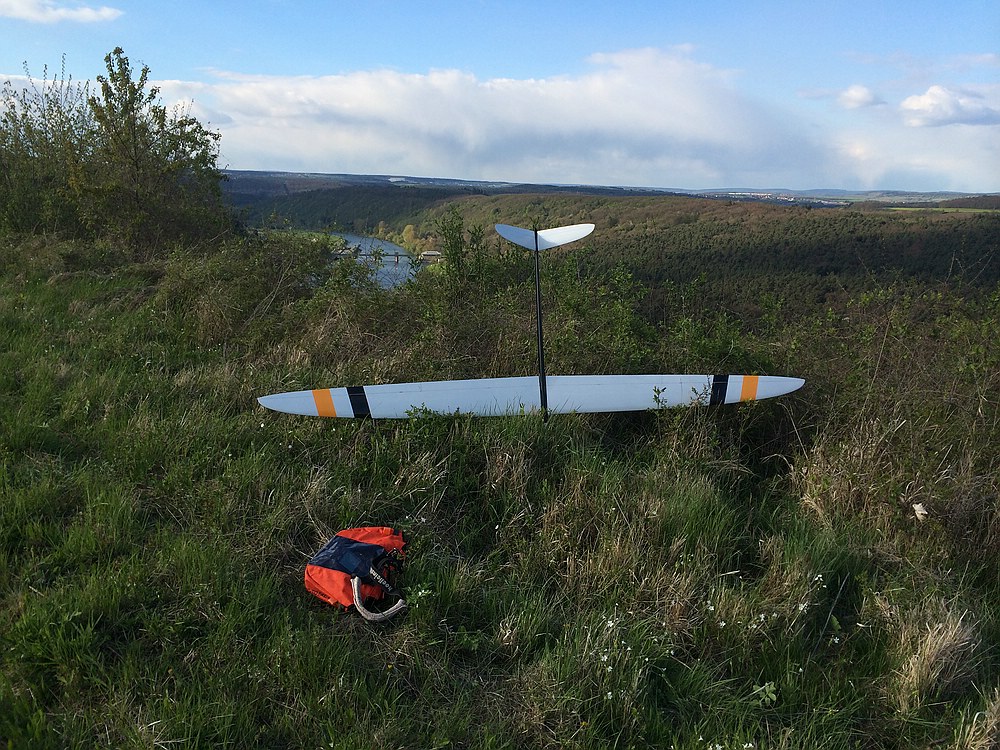 Heute war das dynamische Tragen und in den Phasen mit weniger Wind die Thermik echt Klasse, ich konnte sogar den 1,45 kg Stormchaser 2 x aus dem Handstart fliegen.