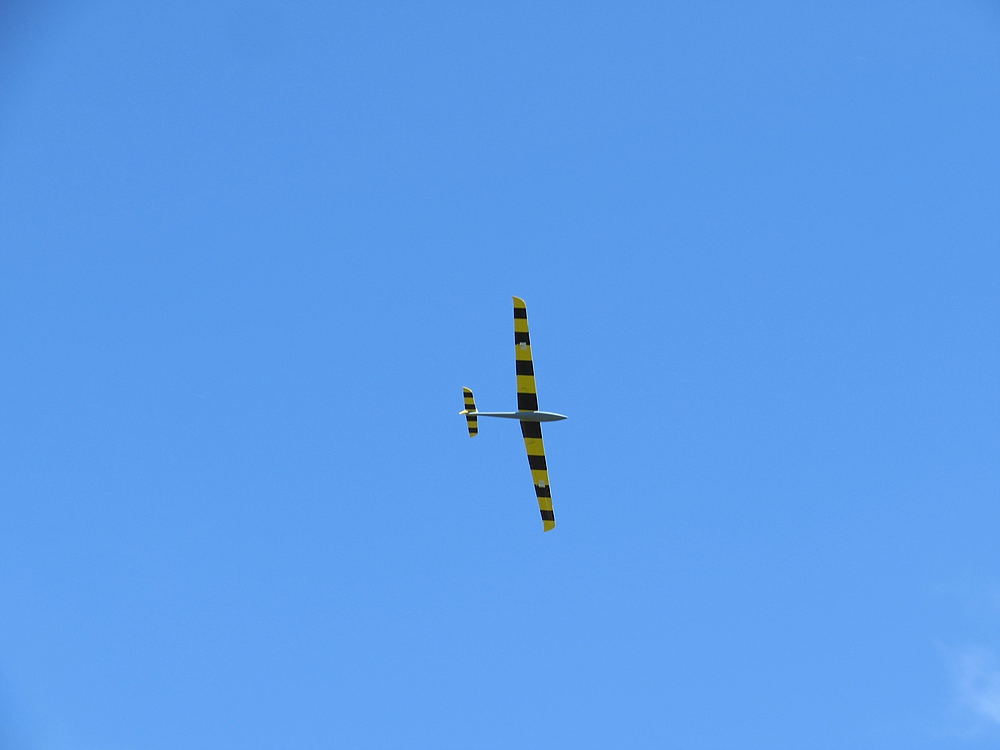 Dementsprechend war heute vorsichtiges, konzentriertes Fliegen mit leichterem Gerät angesagt. Und so ist doch wieder einiges an Flugzeit zusammengekommen. In den Flugpausen wurde mit den netten Kollegen gefachsimpelt, und wir hatten einen sehr kurzweiligen und schönen Nachmittag bei bestem Wetter mit angenehmen Temperaturen. Davon gerne mehr !