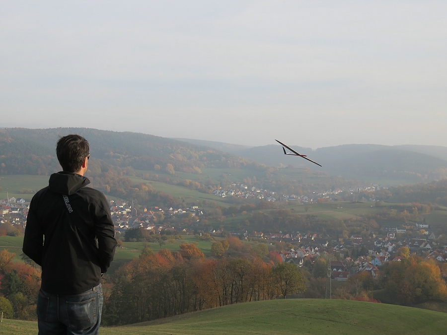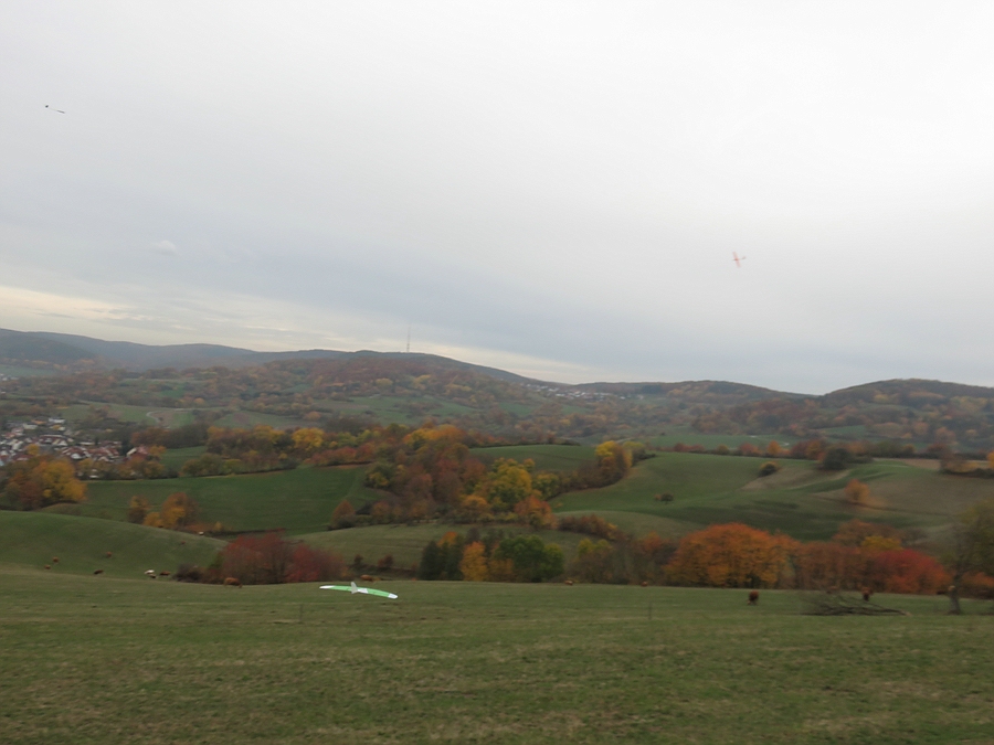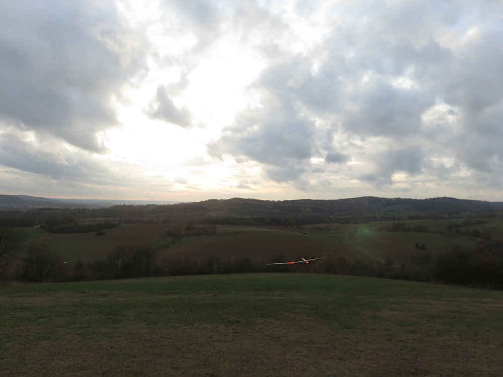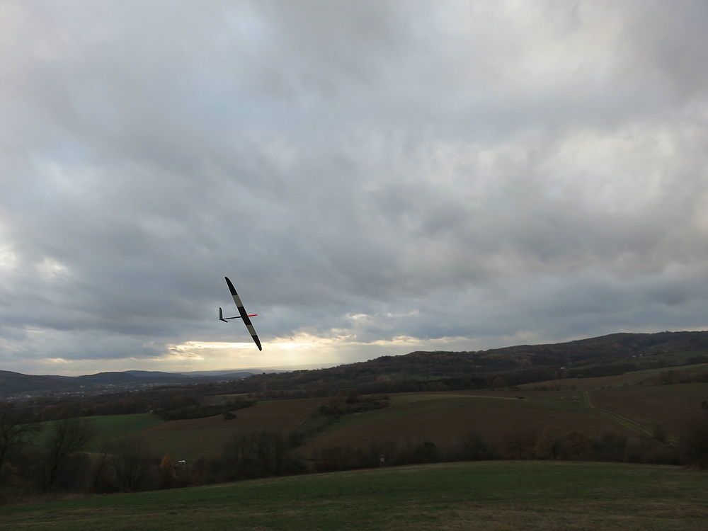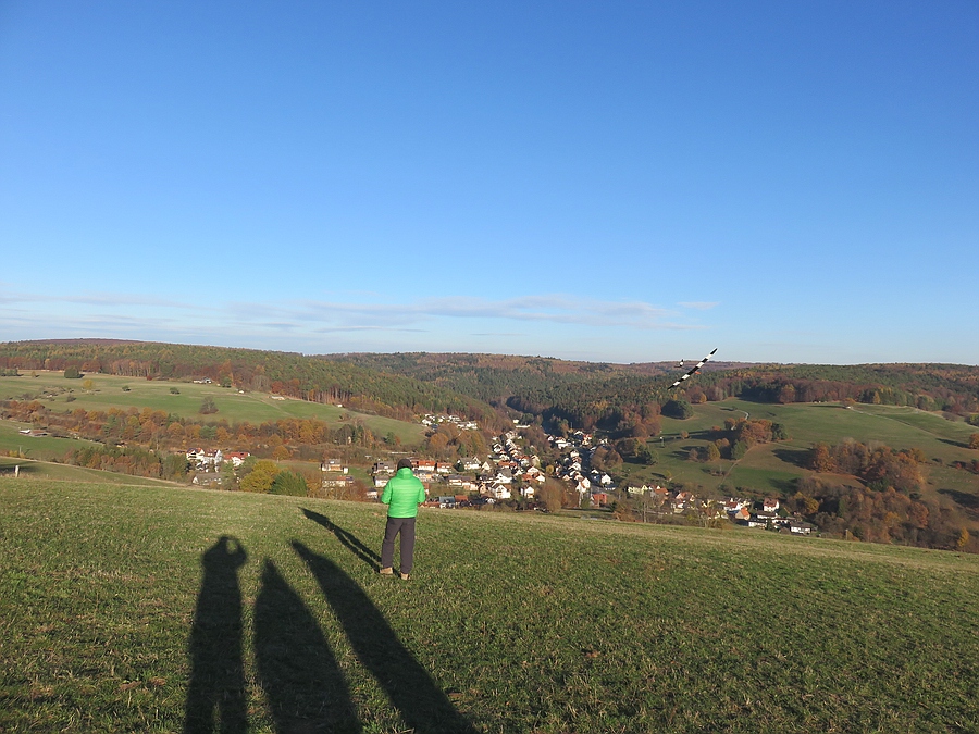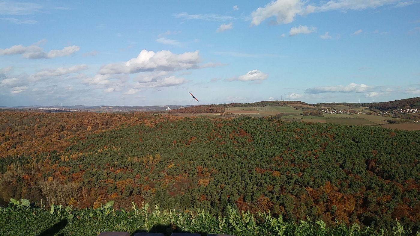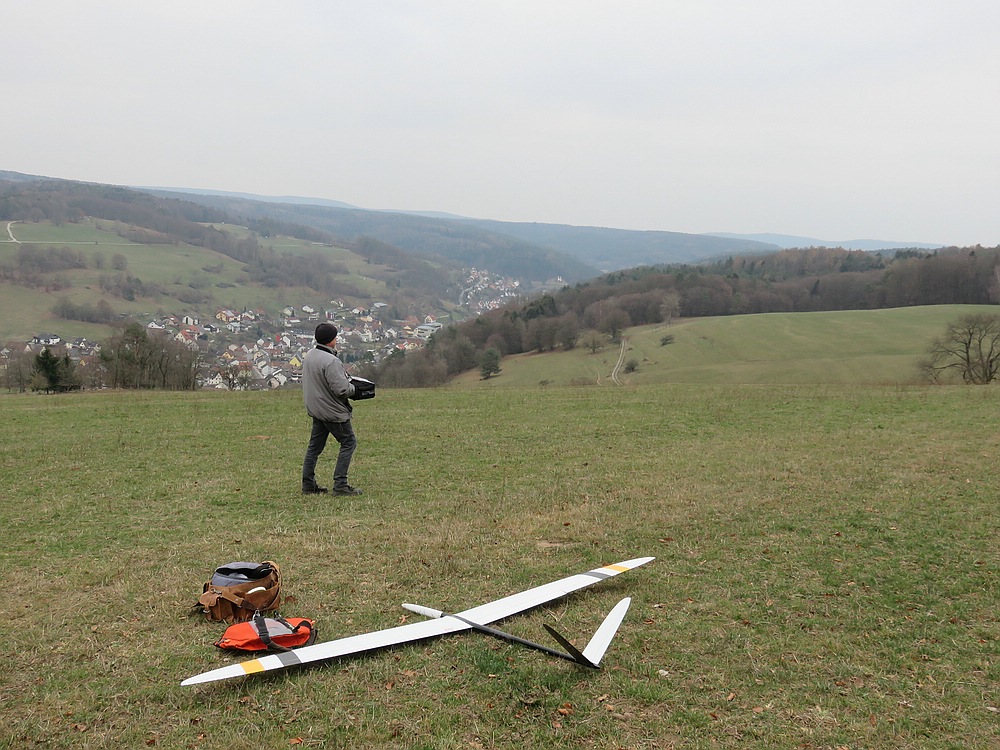 Wir haben uns für den Südhang entschieden und konnten mit ein paar Thermikblasen etwas Flugzeit zusammen kratzen, für ne halbe Stunde oder so ging es sogar recht gut und großflächig für etwas mehr Spaß und das Spessartsegler-Pflichtprogramm 8-)