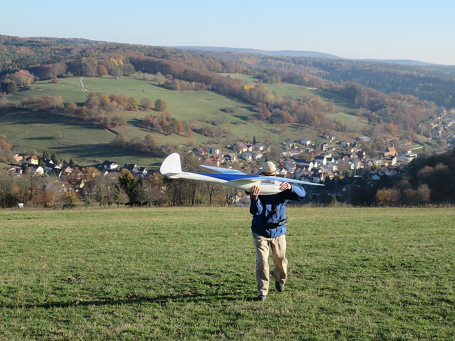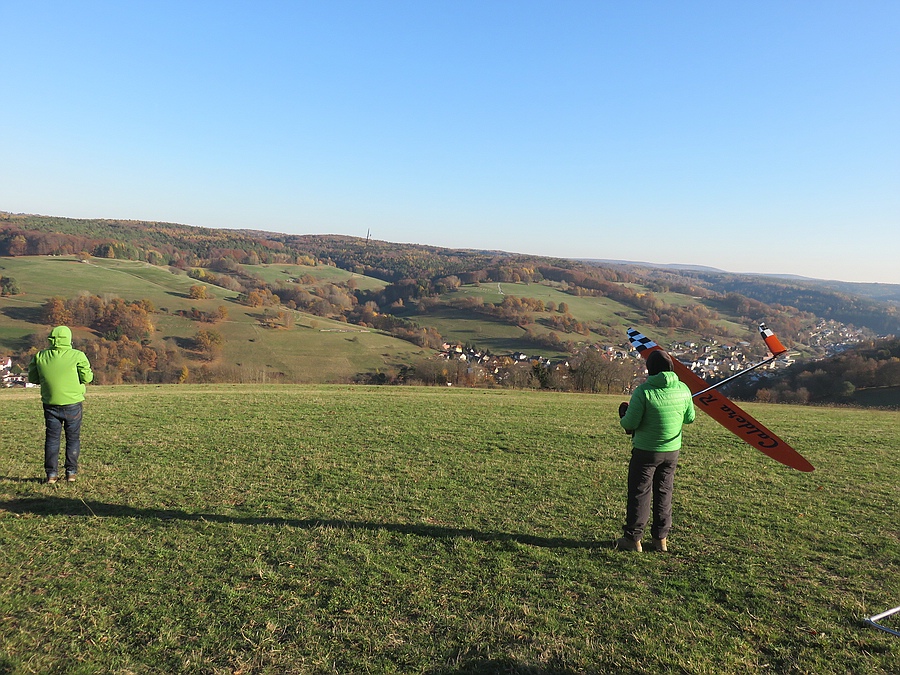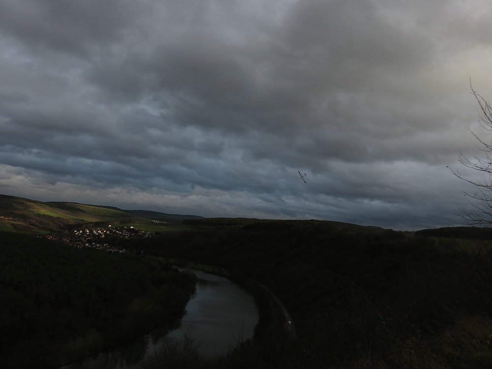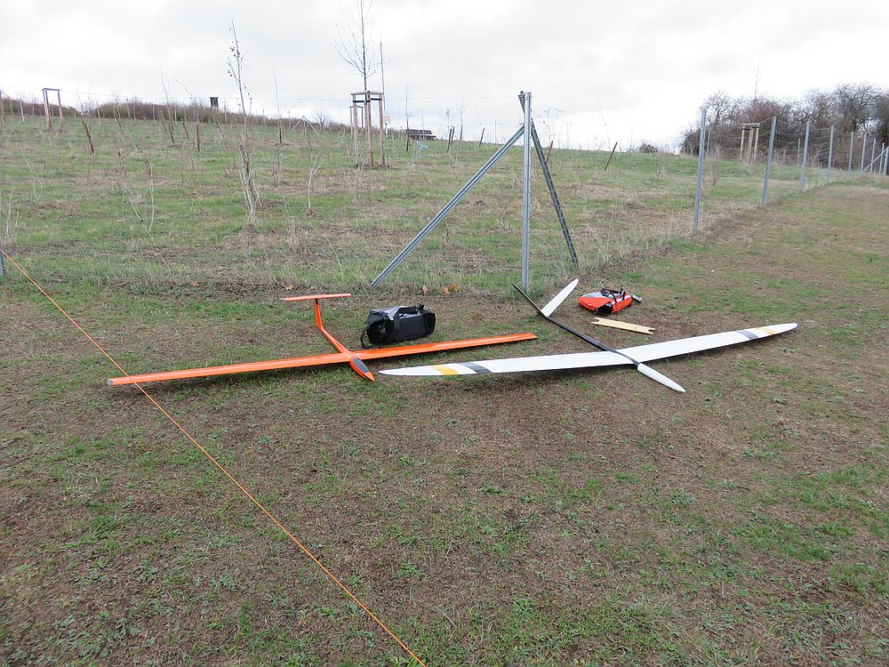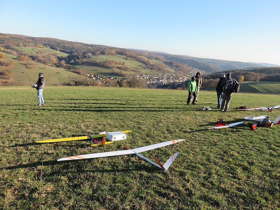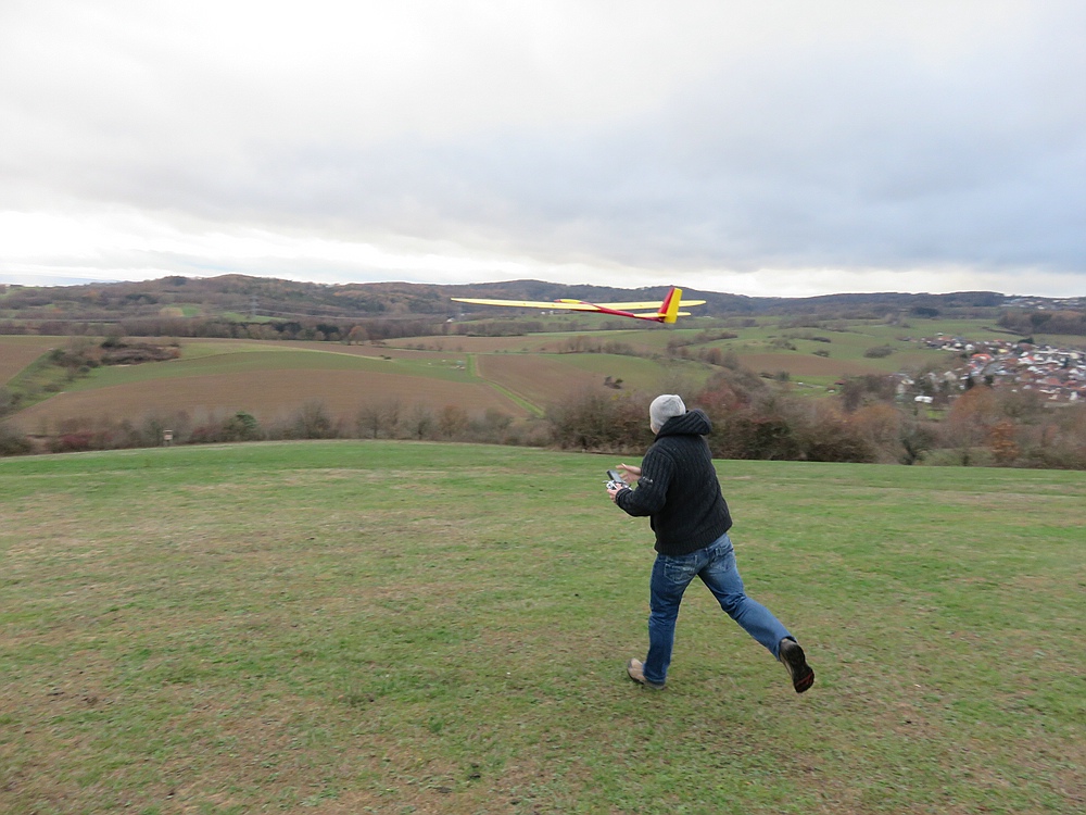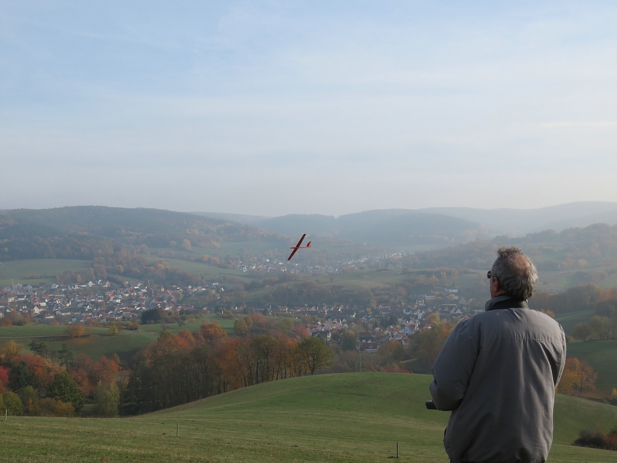 Wir haben uns für den Südhang entschieden und konnten mit ein paar Thermikblasen etwas Flugzeit zusammen kratzen, für ne halbe Stunde oder so ging es sogar recht gut und großflächig für etwas mehr Spaß und das Spessartsegler-Pflichtprogramm 8-)