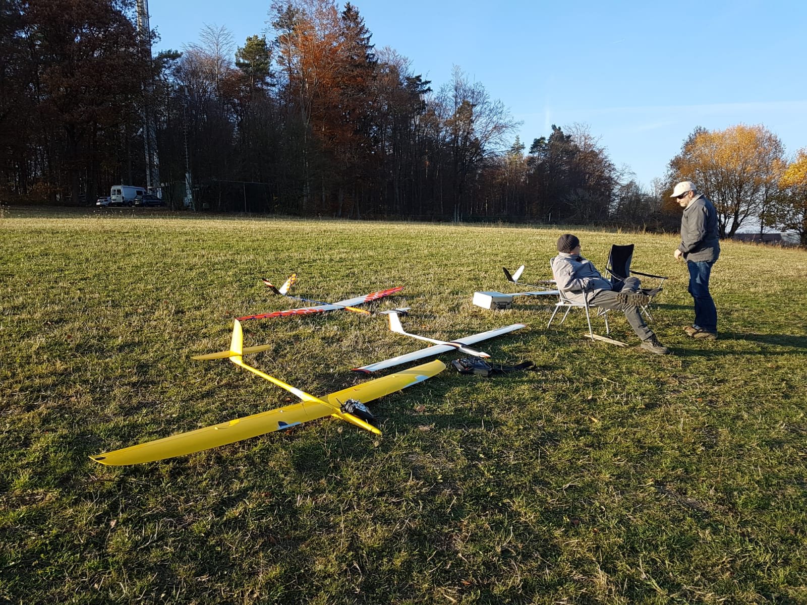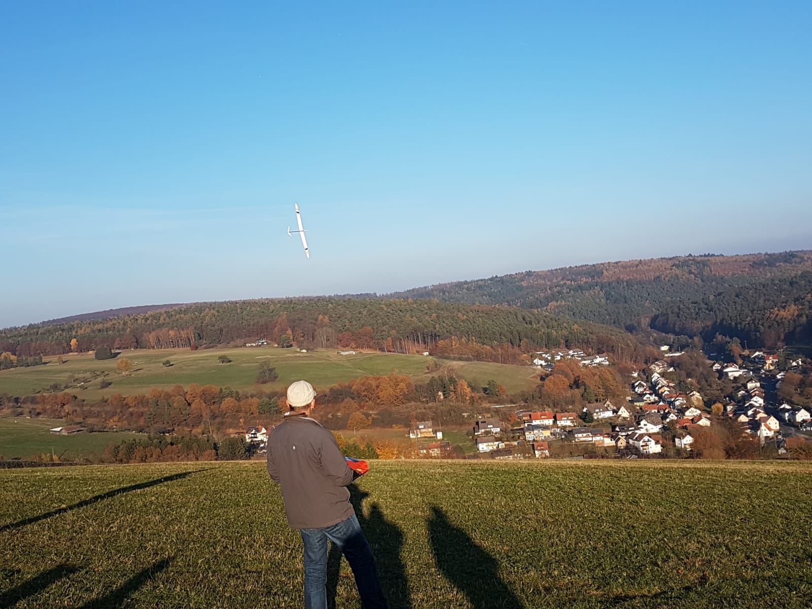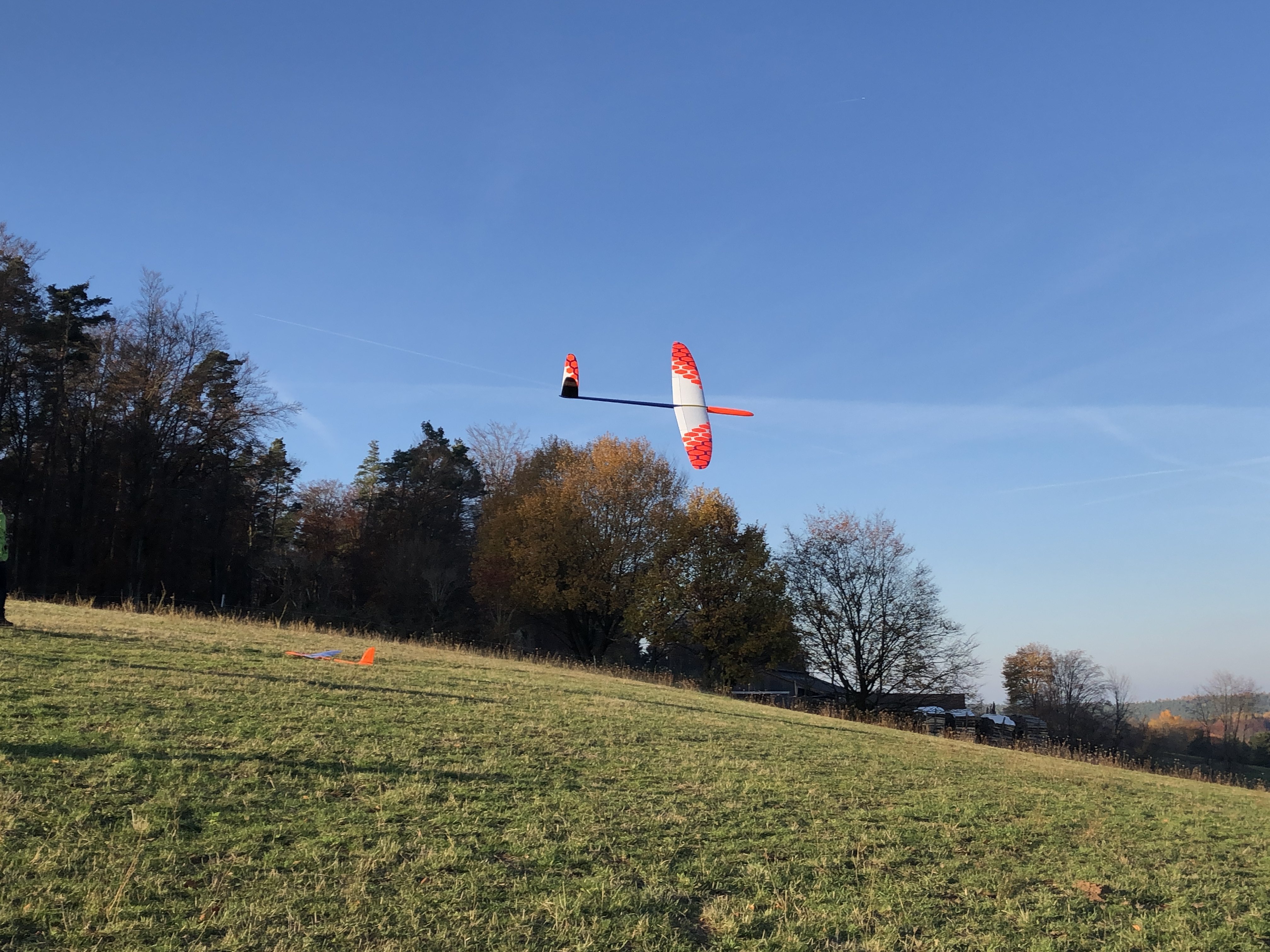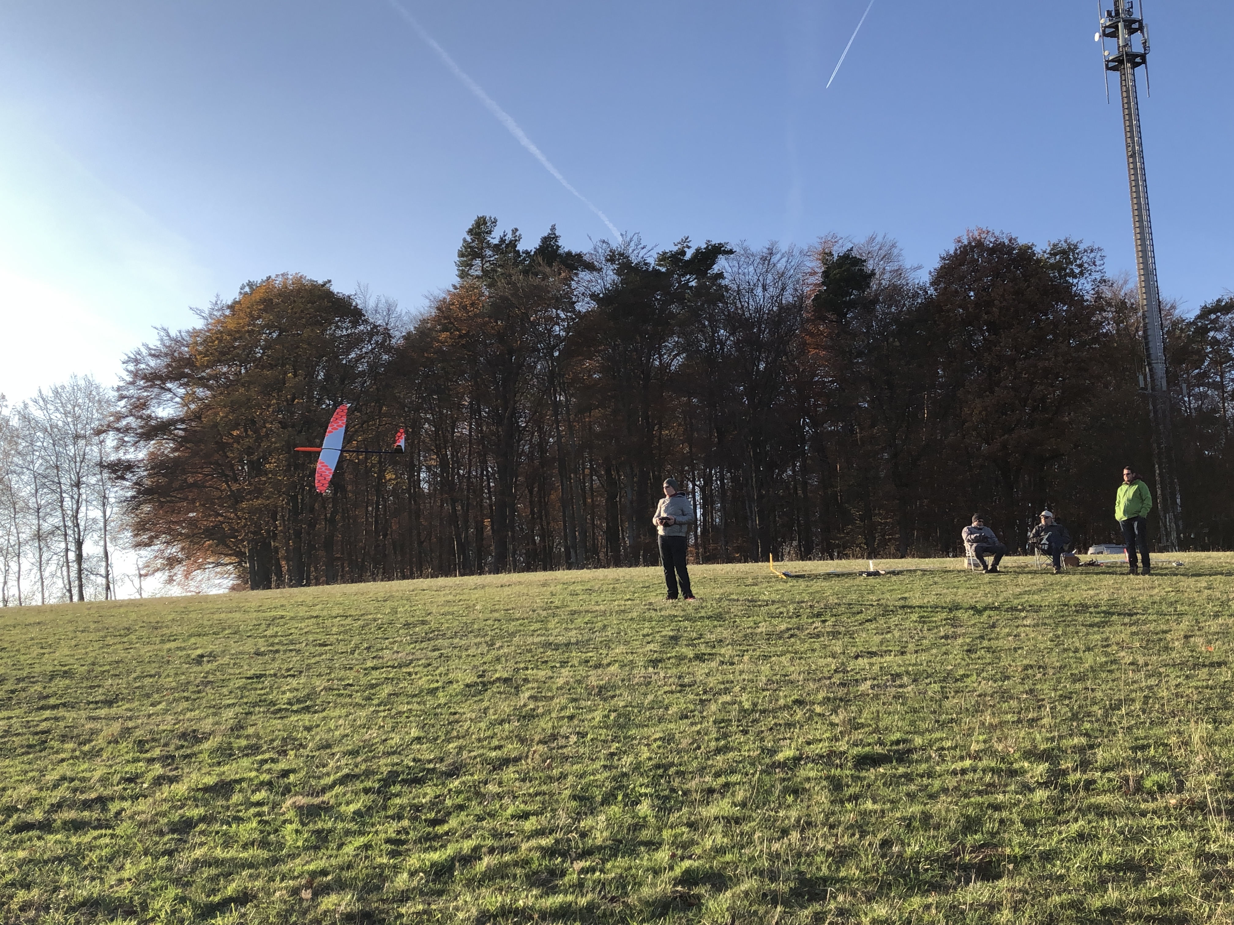 Wir haben uns für den Südhang entschieden und konnten mit ein paar Thermikblasen etwas Flugzeit zusammen kratzen, für ne halbe Stunde oder so ging es sogar recht gut und großflächig für etwas mehr Spaß und das Spessartsegler-Pflichtprogramm 8-)