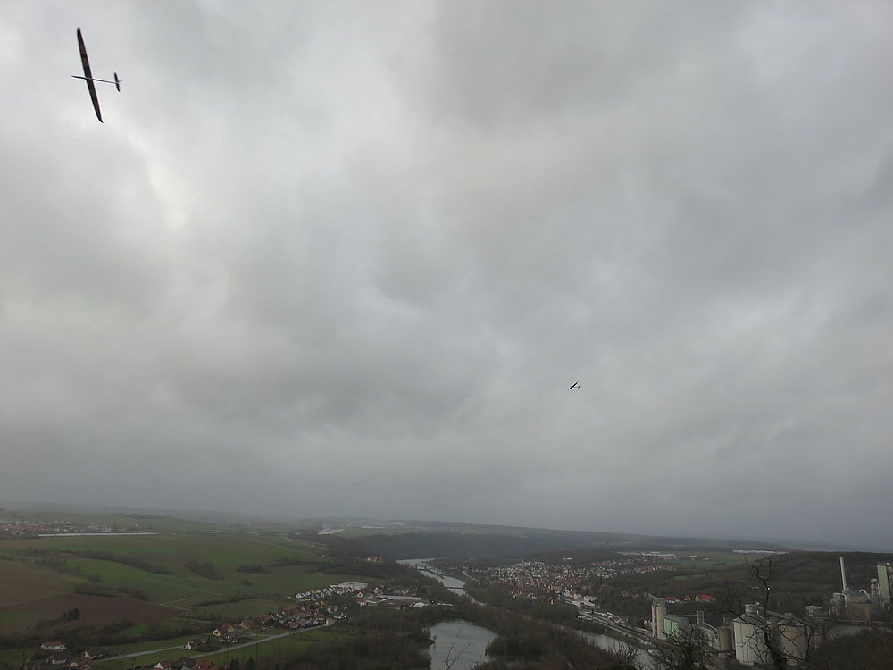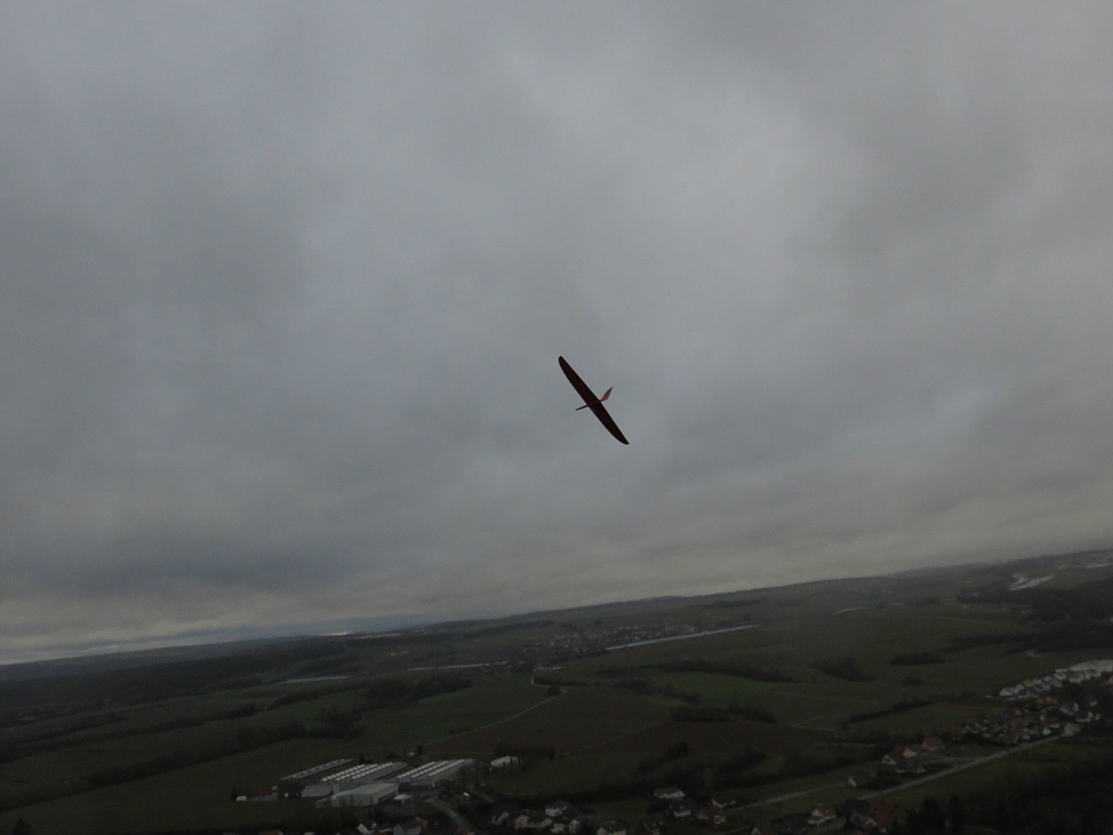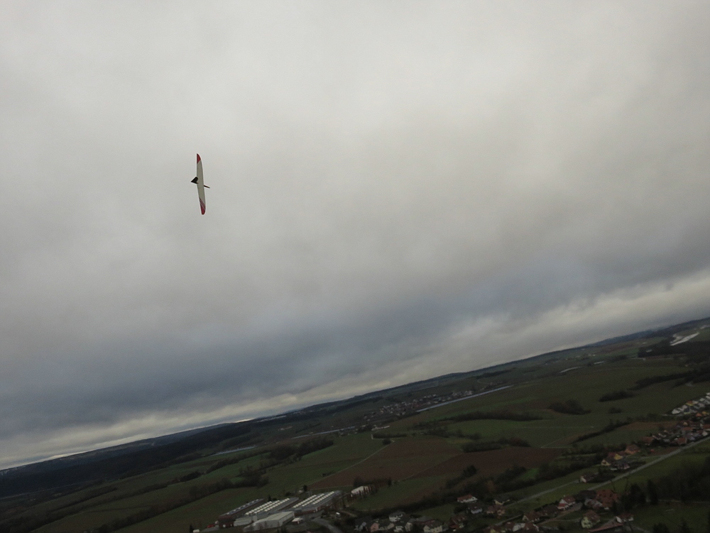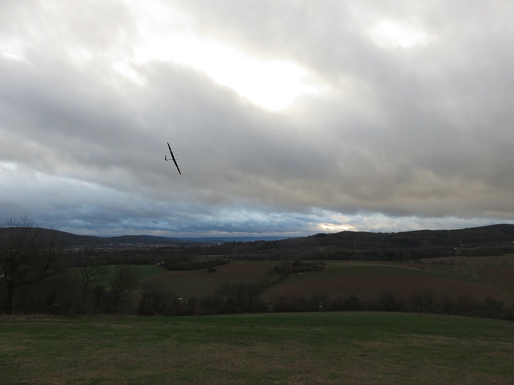 Der eisige Wind mit 2-3 bft und trotz bedecktem Himmel vielen Thermikeinflüssen sorgte für recht gutes Tragen, das Spessartsegler Plichtprogramm war kein Problem und man hätte permanent durch fliegen können wenn es die kalten Finger zugelassen hätten.