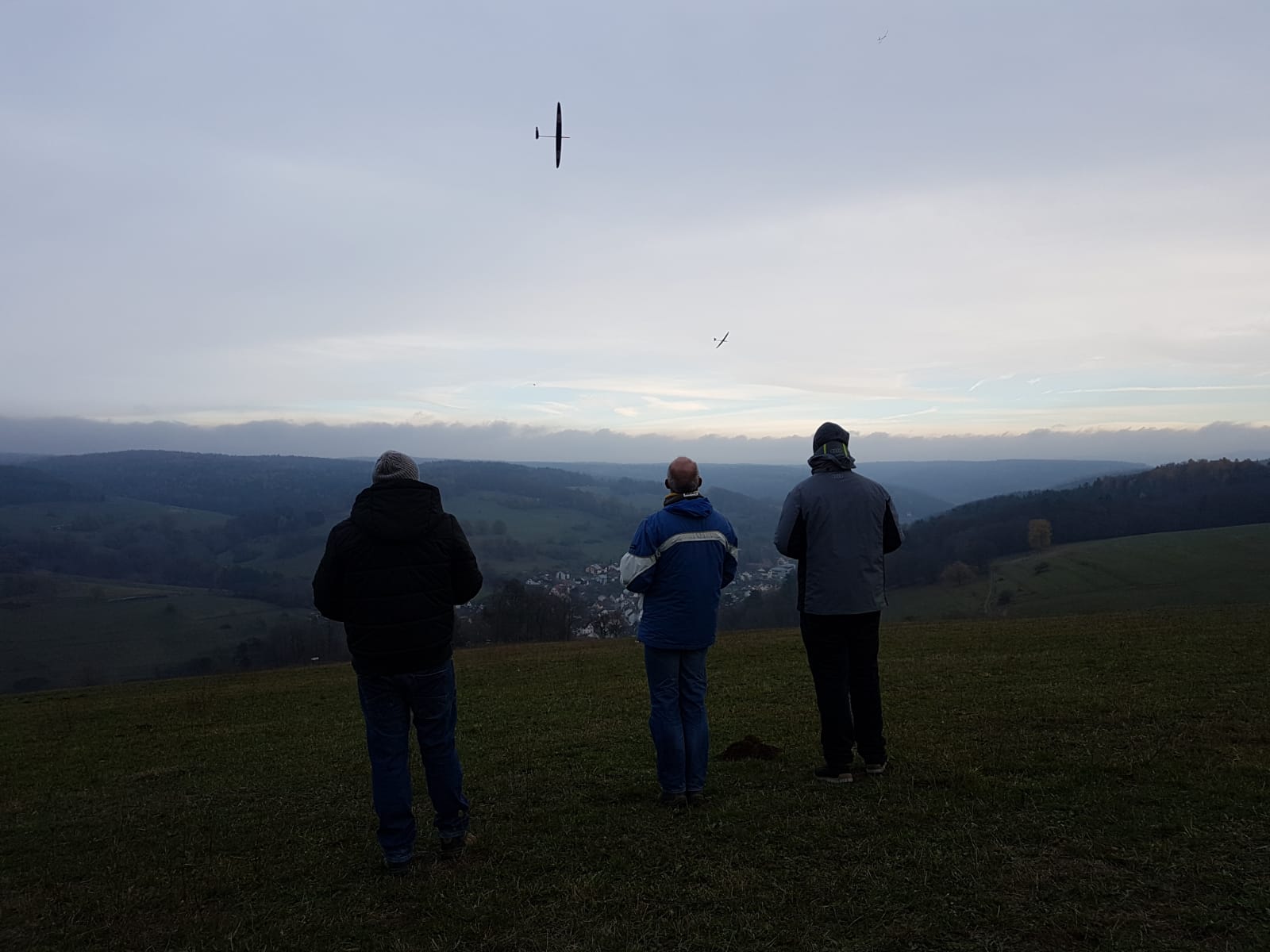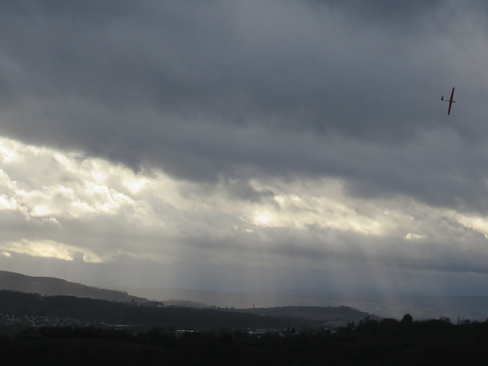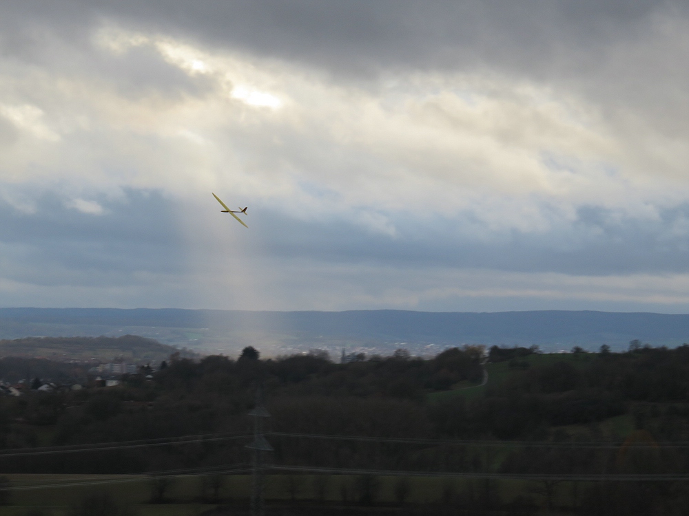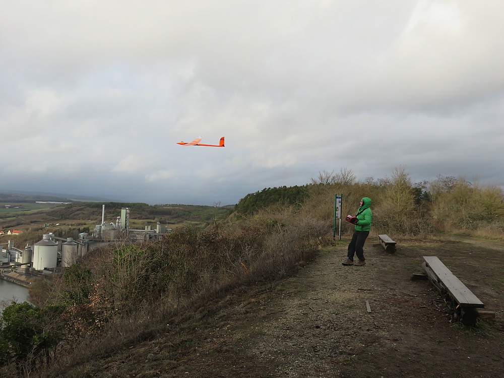 Der eisige Wind mit 2-3 bft und trotz bedecktem Himmel vielen Thermikeinflüssen sorgte für recht gutes Tragen, das Spessartsegler Plichtprogramm war kein Problem und man hätte permanent durch fliegen können wenn es die kalten Finger zugelassen hätten.