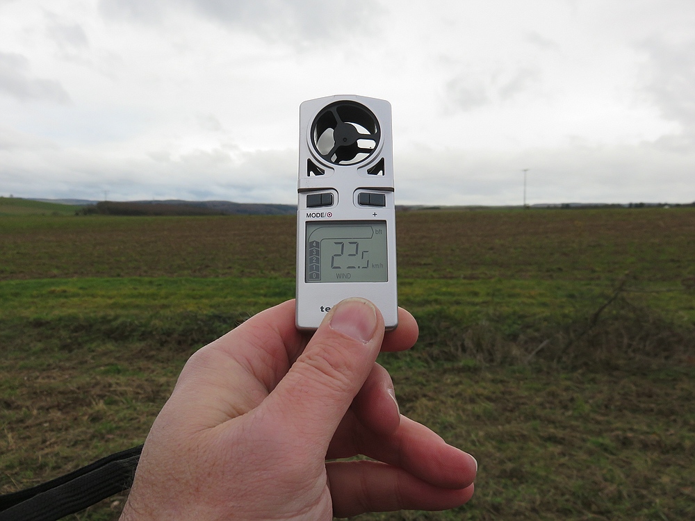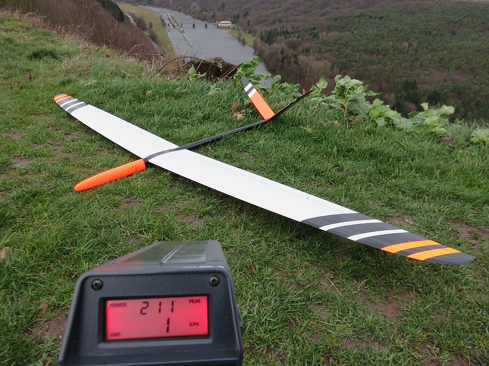 ....war heute wieder besonders wichtig, denn 4 bis gute 5 bft und zum Glück nur wenig Regen haben mich wieder mal bei "falscher" Windrichtung zum DS fliegen an den Nordosthang gelockt. Ich war leider alleine, da ist es etwas schwierig die neue Radarpistole auszuprobieren....aber: die Stalker Pro hat einen Modus in dem sie ohne irgendwas drücken zu müssen permanent misst und den höchsten Wert speichert. Das habe ich eingestellt und die Pistole mit ungefährer Ausrichtung nach der Leewende auf einen vorhandenen Tisch gelegt. Ob die Gun dabei zufällig eine schnelle Runde erwischt ist zwar Glücksache, aber beim Energic mit halbem Ballast waren immerhin 211 km/h auf dem Display....es scheint dort bei gutem Wind auch ganz gut zu gehen :)