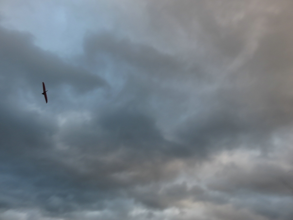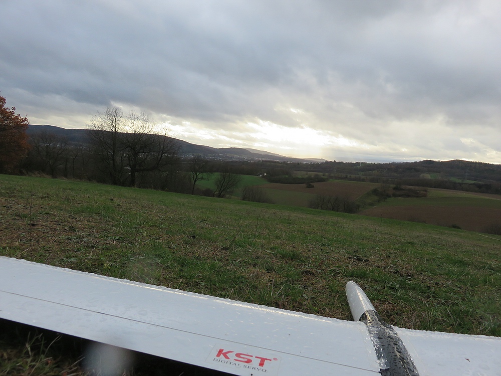 Der Wetterbericht hat Dauerregen vorhergesagt, aber zum Glück kam es anders, ~4 bft um West und ein paar harmlose kleine Schauerchen sorgten für reichlich Flugzeit für die fünf Piloten die sich von der Wetterprognose nicht davon abhalten ließen an den Hang zu kommen :thumbup: