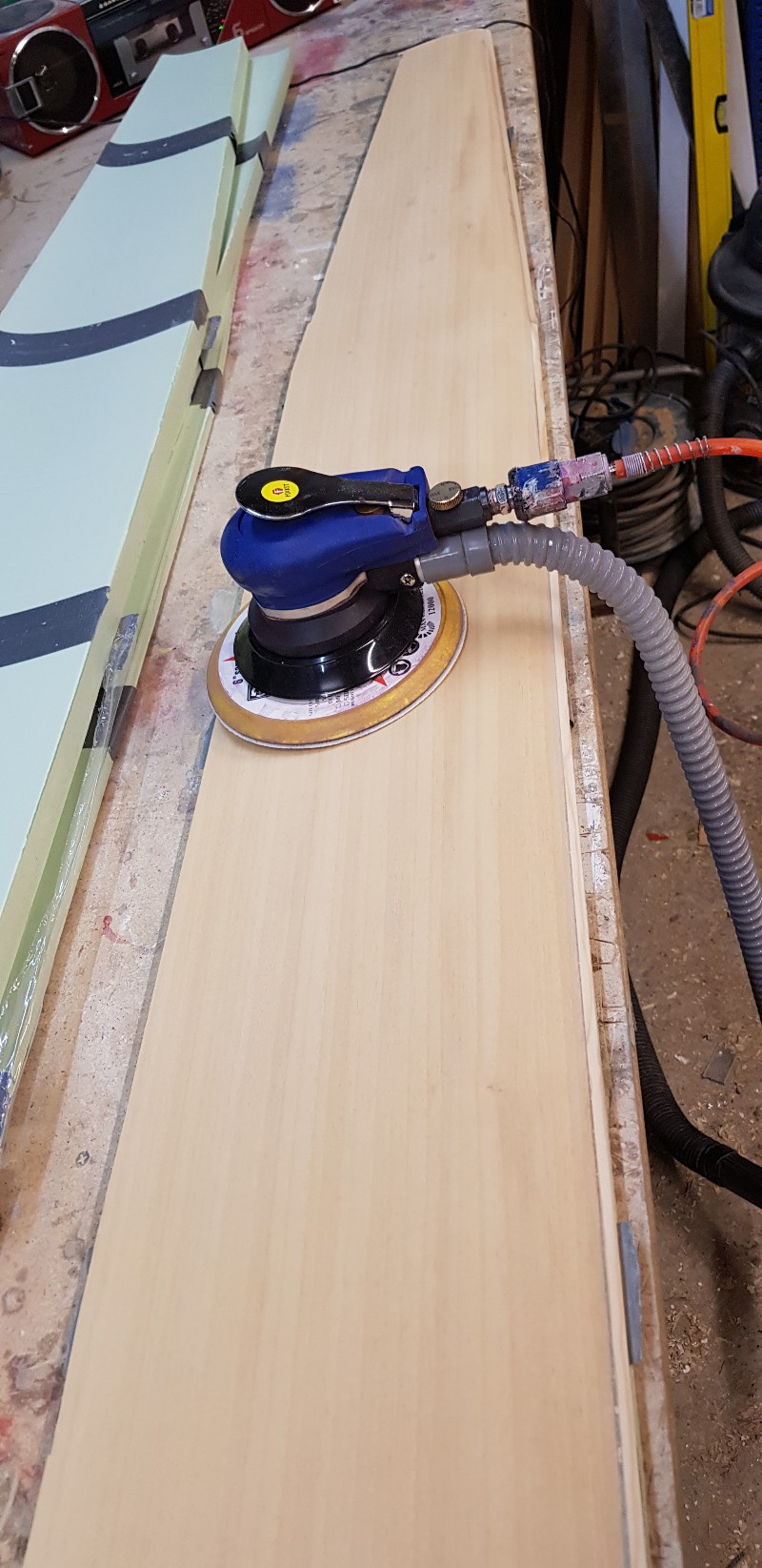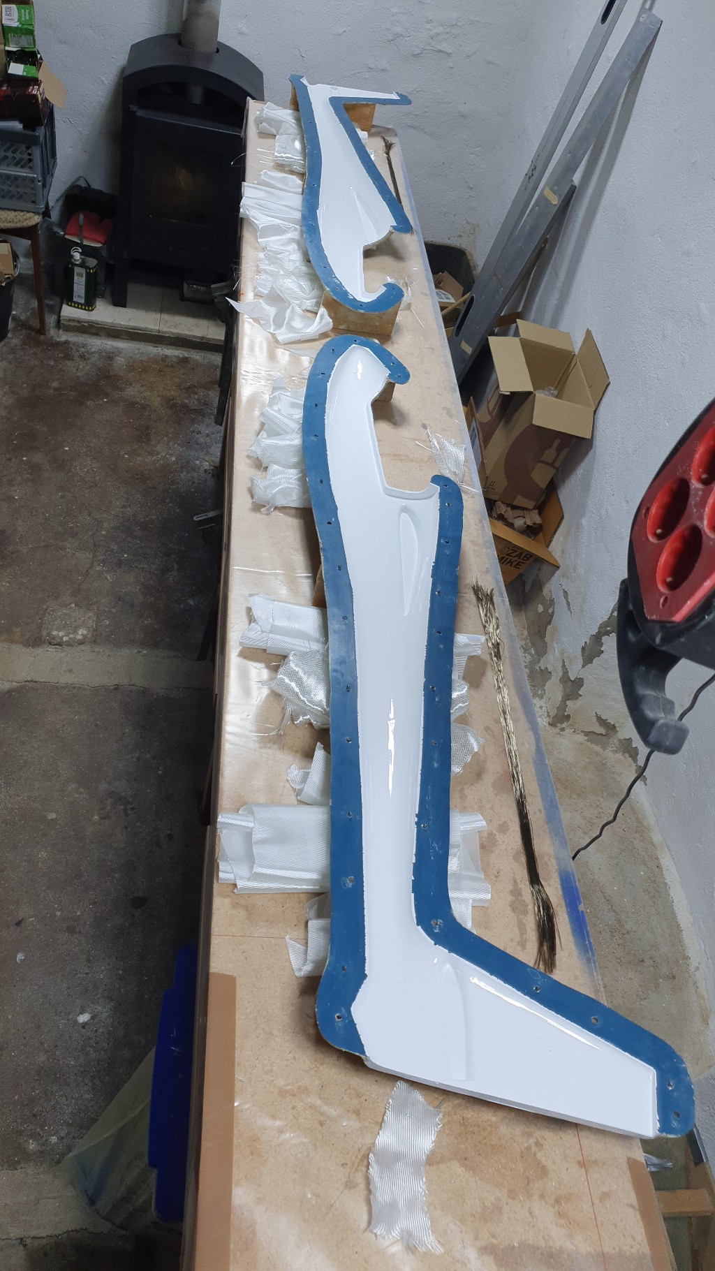 Mittlerweile, begonnen habe ich den Rumpf zu laminieren vor ca 2 Monaten, habe ich die Kernchen geschnitten und die Oberseiten abgepresst. Bin mal gespannt, wann es wieder weiter geht...