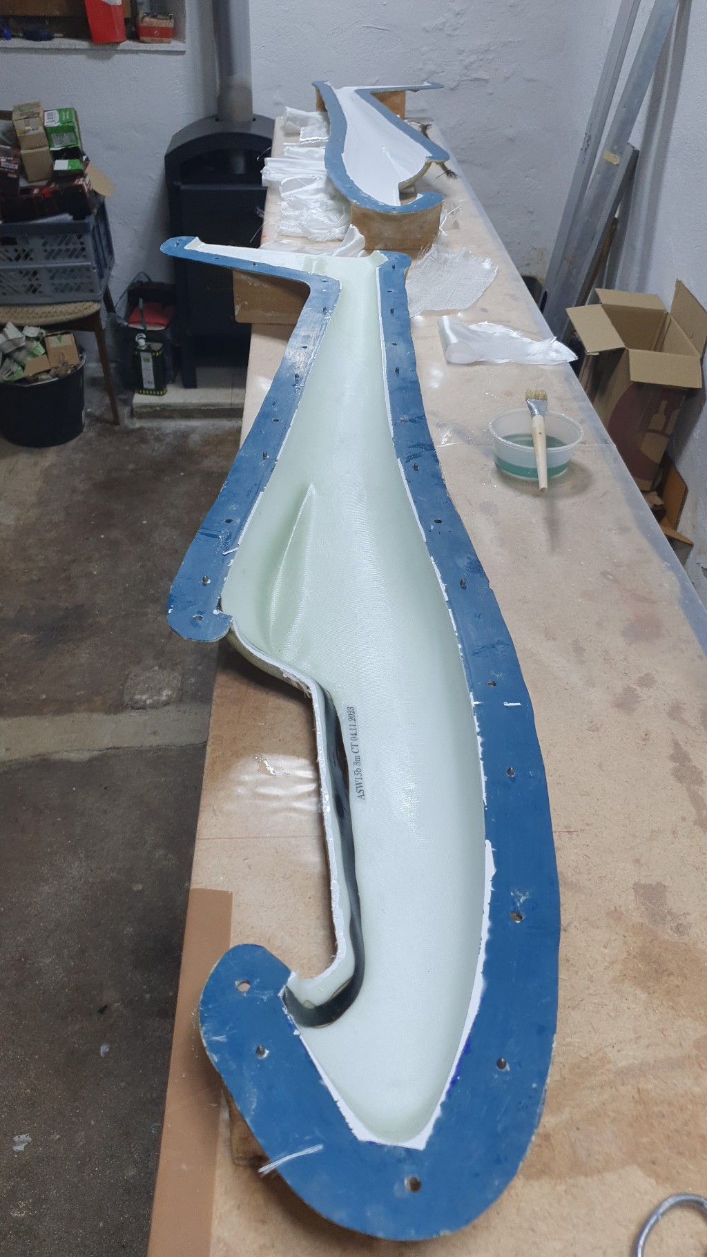 In einem Konvolut aus alten Förmchen, das ich dank der organisatorischen Hilfe von Timo und Tobi für unsere Harzhölle kaufen durfte, war ua eine Form für diese kleine 3m ASW15. Um nach langer Baupause endlich mal wieder Harz, Lack, Abachi, ... zu schnuppern, dachte ich mir, ist sie genau das Richtige... Ein netter kleiner Rucksacksegler zum überall Fliegen, ideal wenn die Zeit für´s Hobby knapper wird.
