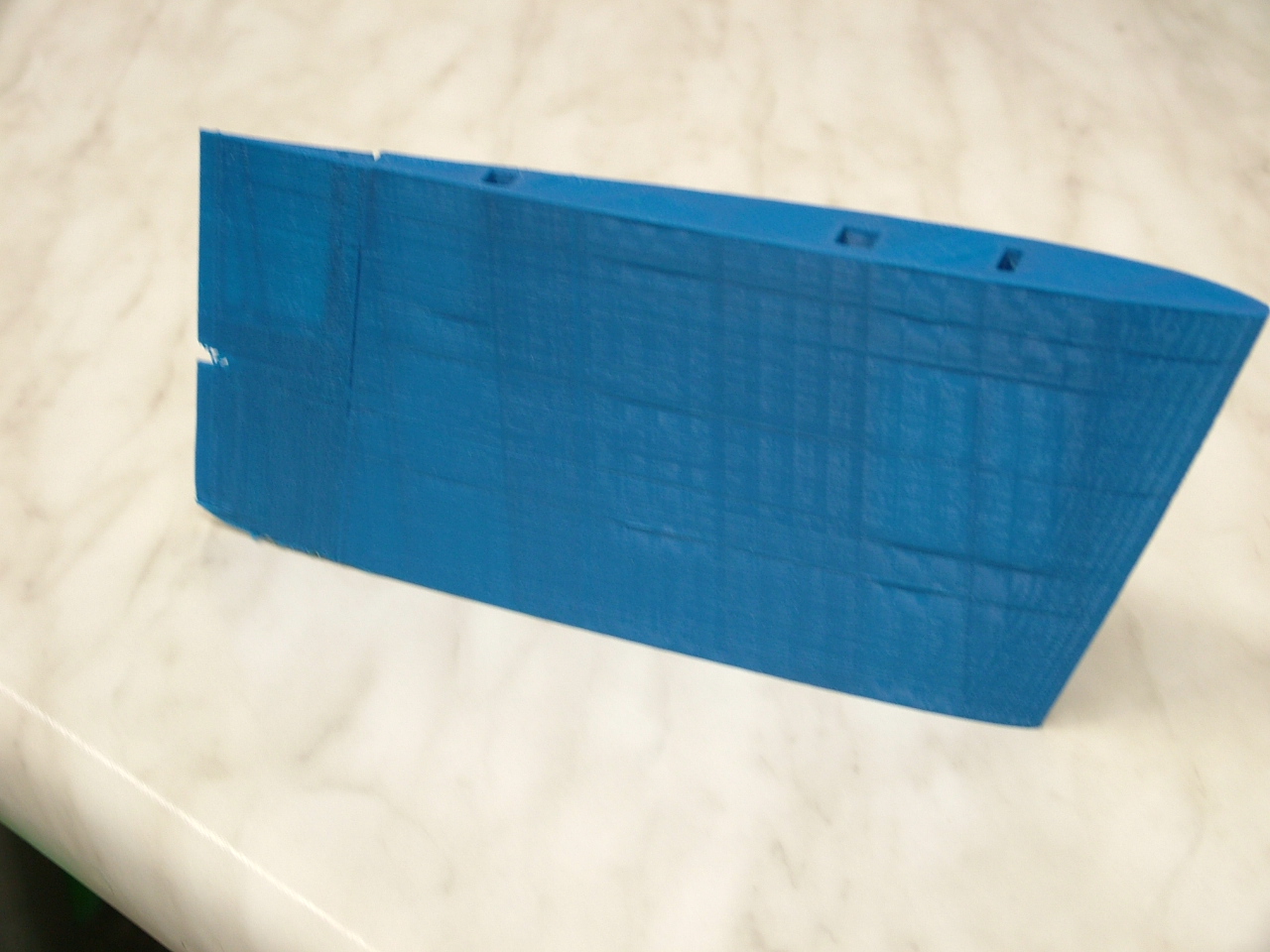 Im originalen Thread kam schnell die Idee auf den Flieger zu skalieren und so entstanden verschiedene Varianten von denen ich die um alle Achsen um 33% skalierte (also mit 1,2m Spannweite) für die für mein Vorhaben am besten geeignete halte. (Übler Satz