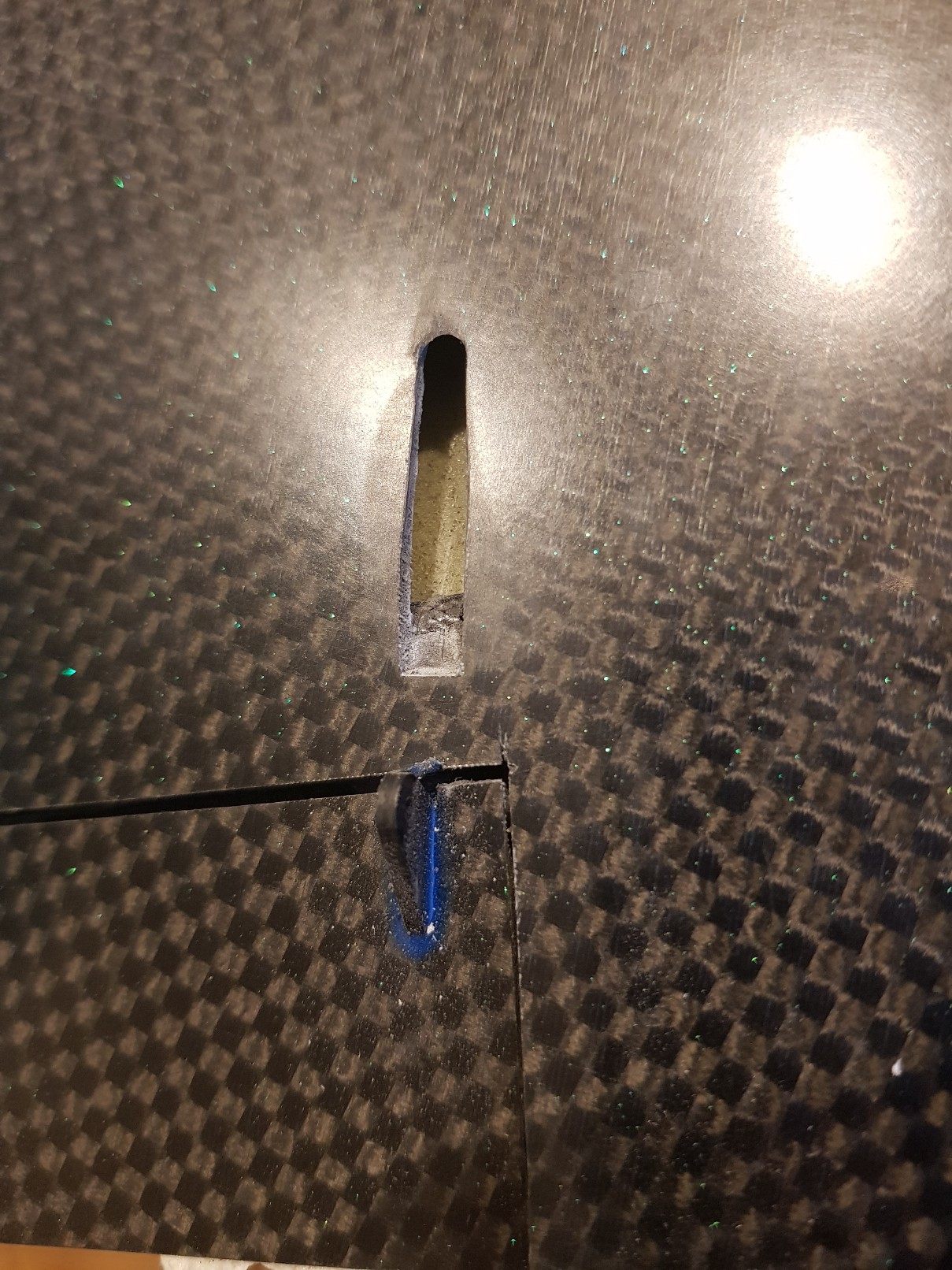 1) Lack aus Dose, 2x 90g CFK, Verstärkungen unten und im Anschluss, 2k PU ausgeschäumt 》25 Gramm
