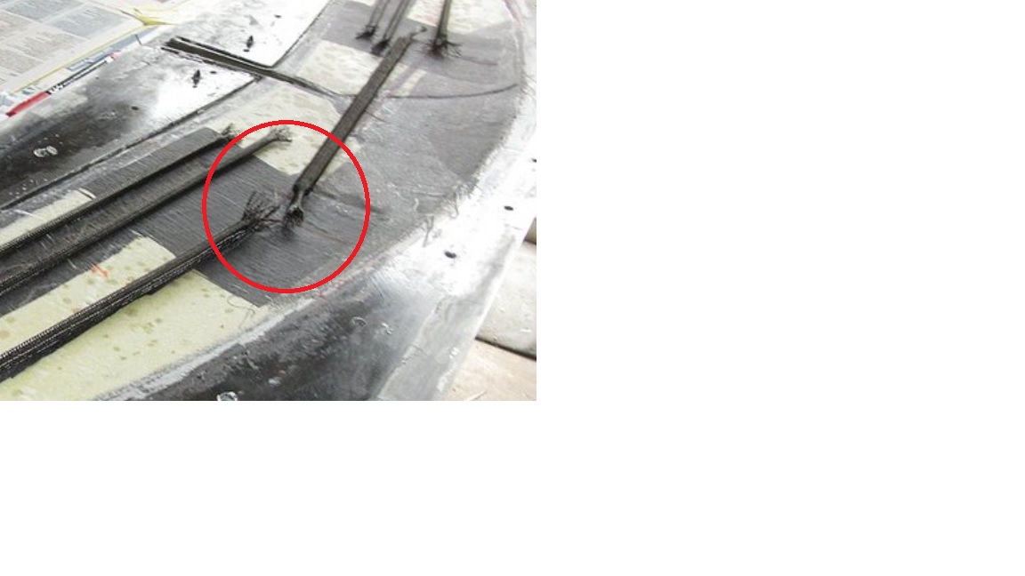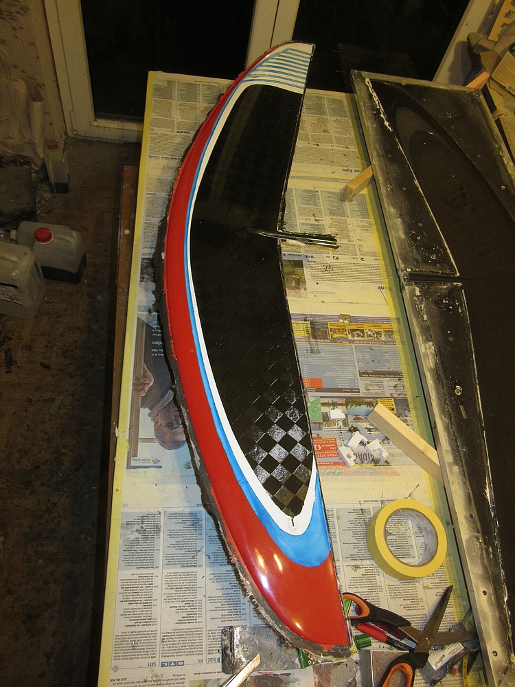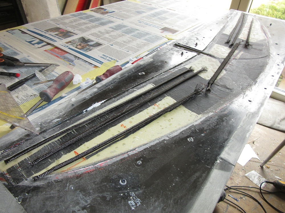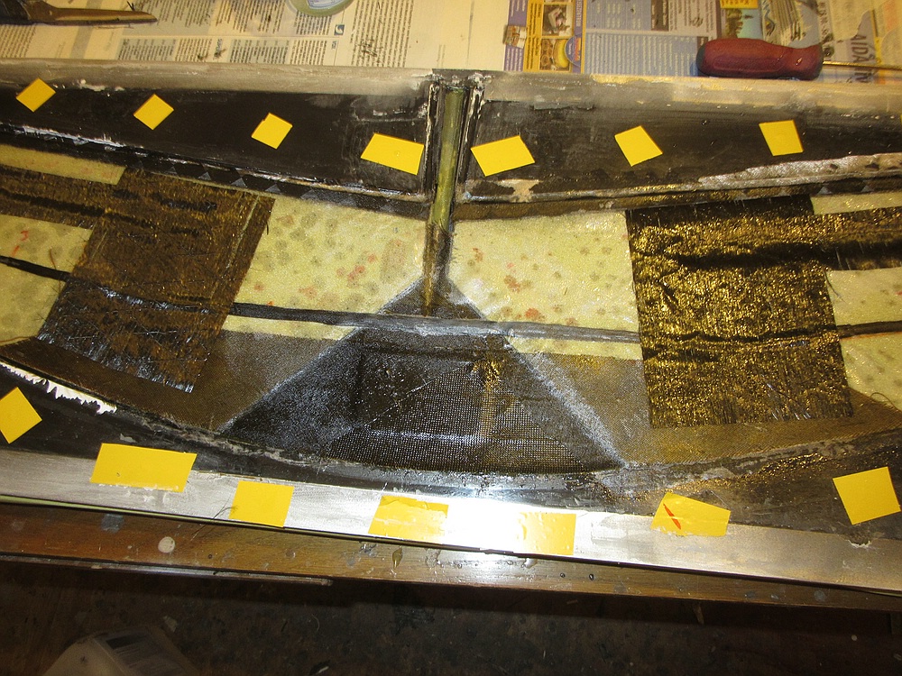 4) 25g Glas, 30g Carbowave, 60g Keflar, 30g Carbowave, Verstärkungen unten und im Anschluss 》12g