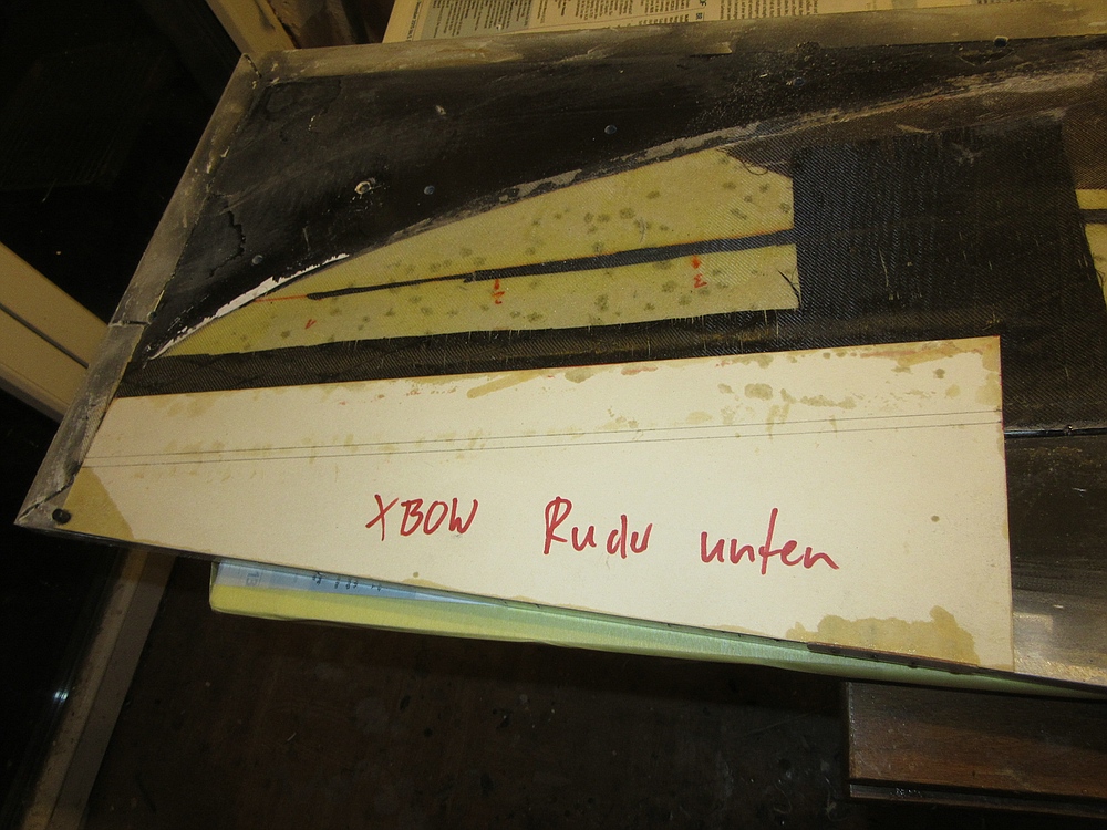 Damit ich auch mal zeigen kann wie ich das meine habe ich heute angefangen den Gewebezuschnitt für den nächsten XBOW zu machen. Der Lack ist schon in der Form, das Gewebe für die Außenlage und den 2,4 GHZ-Hartschalenbereich ist fertig zugeschnitten. Morgen Stützstoff und das bisschen Innenlage zuschneiden, dann kanns voraussichtlich am Wochenende ans laminieren der #2 aus meiner Form gehen ;-)