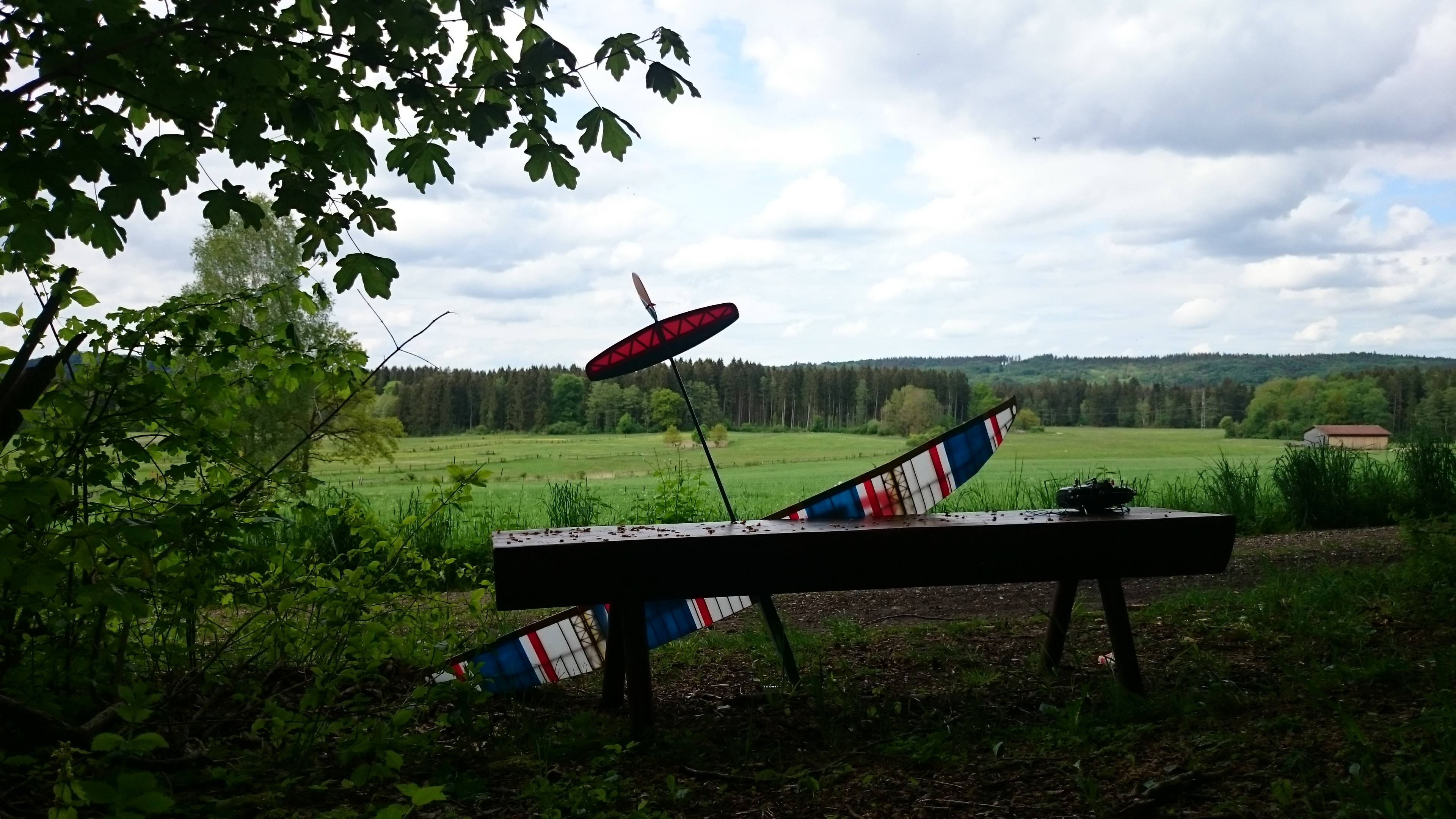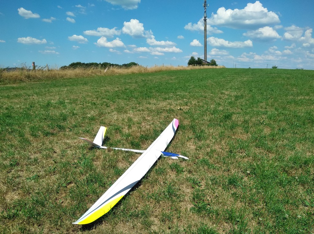 Der Schwerpunkt lässt sich sicher noch optimieren, ebenso die Trimmung für bestes Gleiten, aber Spaß macht es schon so. Dafür, dass ich vor 16 Jahren am Hang zu fliegen aufgehört habe und jetzt mit einer Eigenkonstruktion in der Ebene Thermikfliegen lerne bin ich zufrieden.