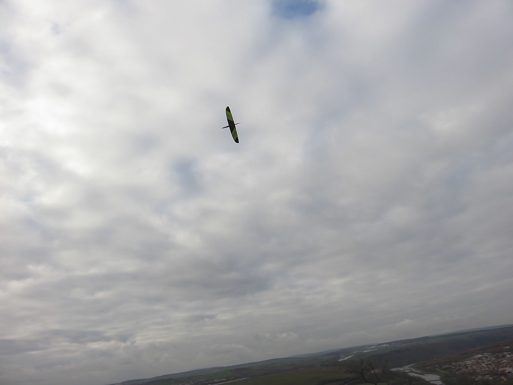 Am Samstag zunächst nur sehr schwaches Tragen bei trübem Himmel und oft Crosswind von rechts am Spessartsegler Vereinshang, ohne die Flitsche von Lutz war es kaum möglich unten raus zu kommen.