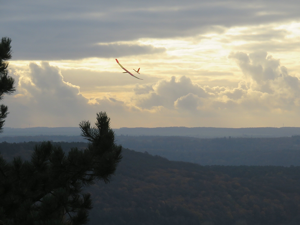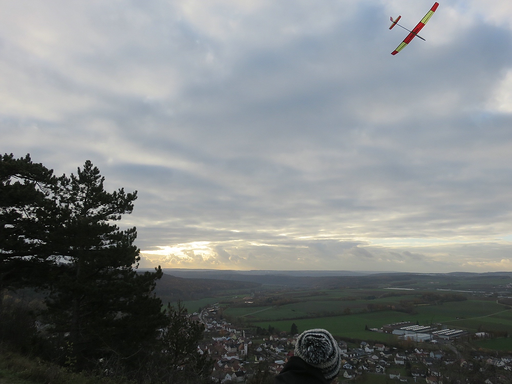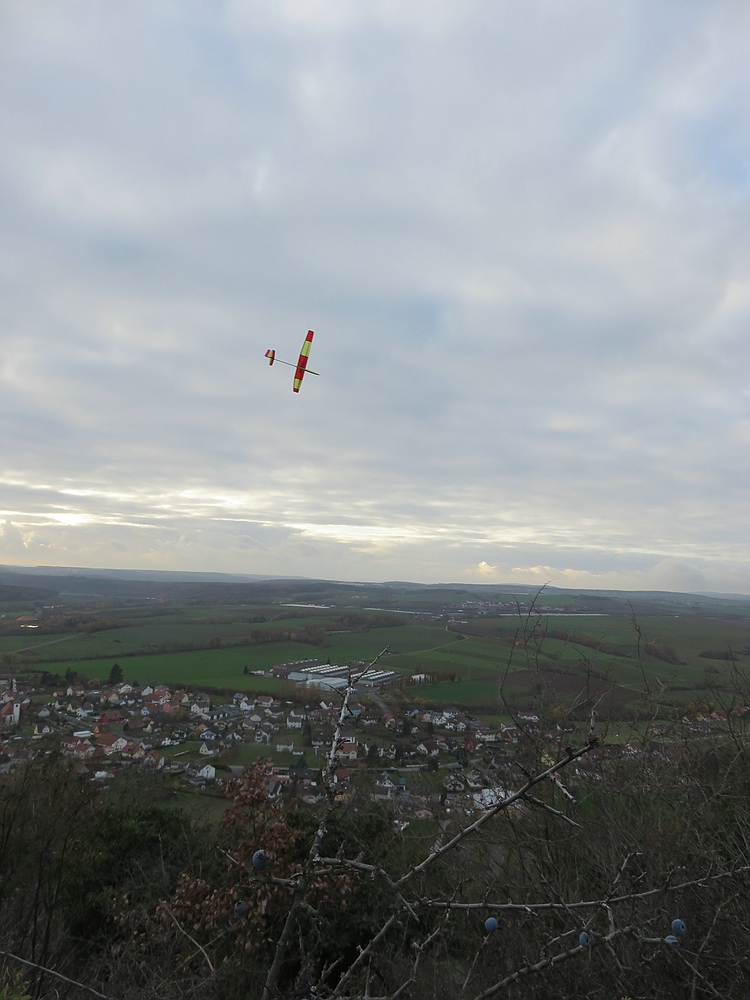 ....aber egal, ein bisschen was geht immer und nach zwei wieder hoch geholten Absaufern direkt nach den Starts von XBOW2 und Curst Blau kam beim DS an der hinteren Hecke am Fels doch noch einiges an Flugzeit zusammen.....Hauptsache wieder Zuhause....also draußen :)