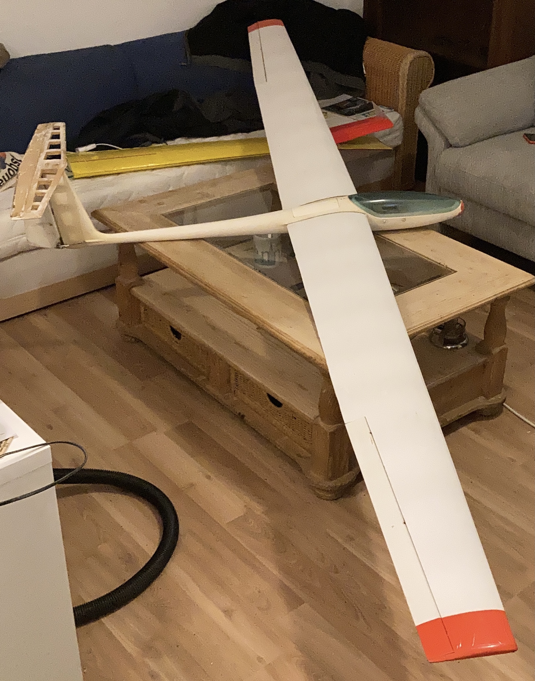 Der Rumpf ist aus ABS und der Segler fliegt bald nach Hessen. Ich bleibe bei meinen max. 250cm Spannweite.