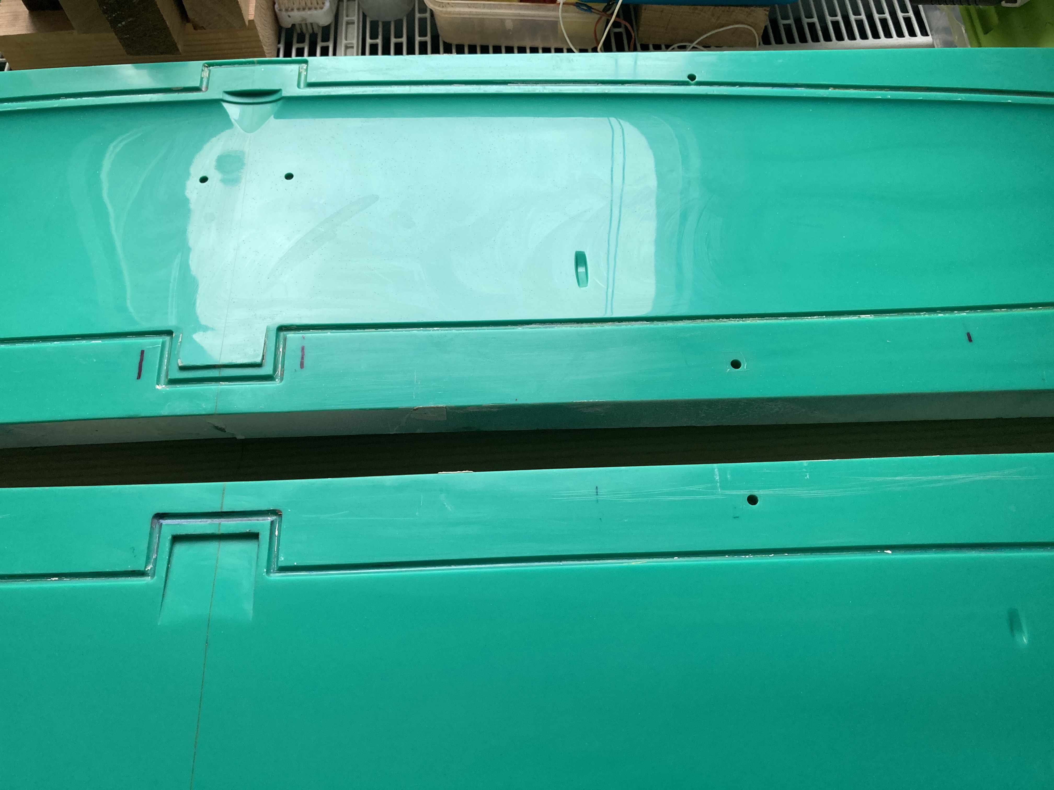 Aber aufgrund des relativ dünnen Profils bei dem kleinen Zweimetermodell (der Kabelkanal in den Flächen ist nicht einfach eine ins Styro geschnittene Röhre, sondern irgendwie einlaminiert, also feste Substanz, wie sie das auch immer gemacht haben) möchte ich die Wurzelrippe nicht unnötig schwächen.