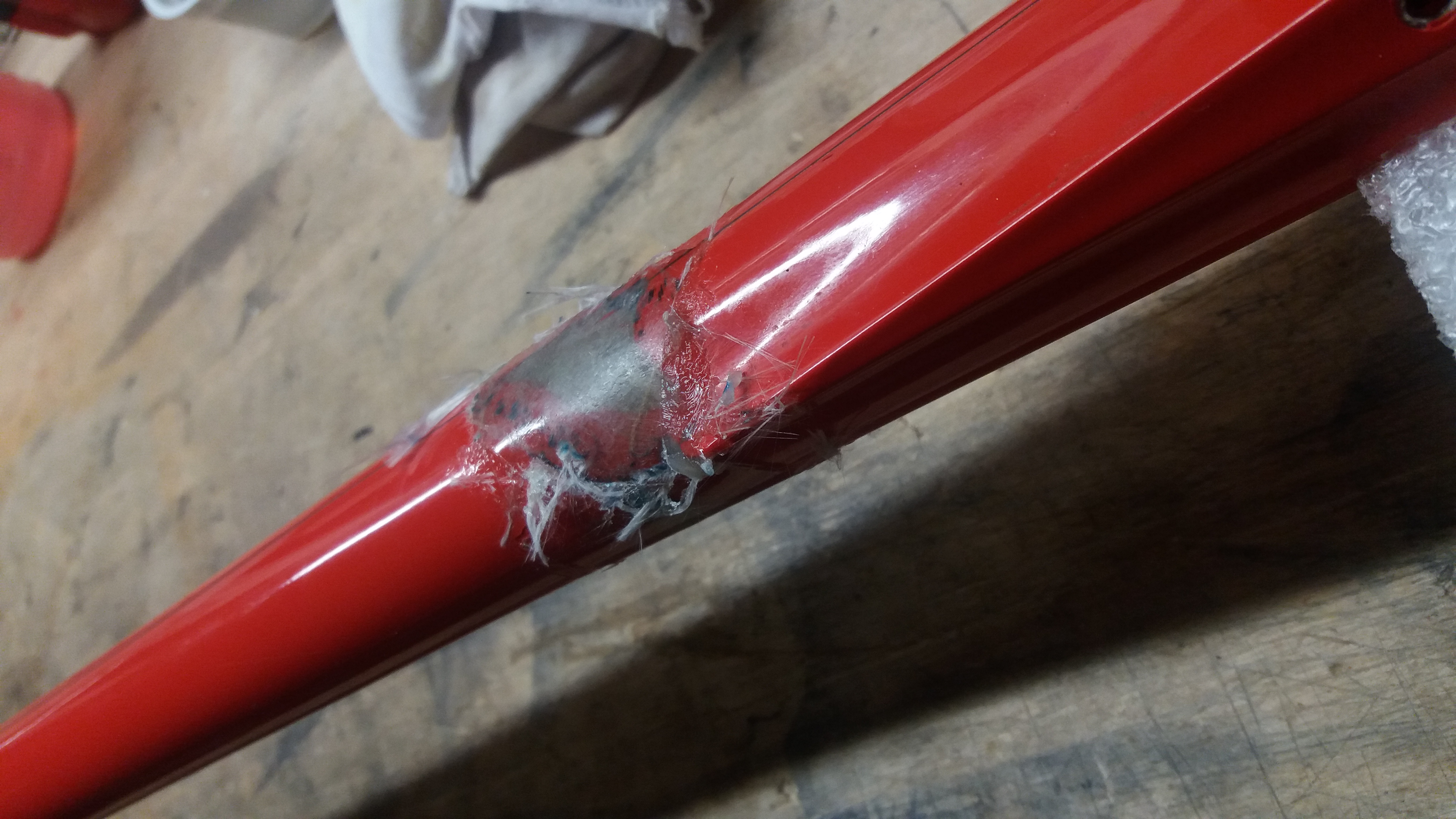 Nach dem aushärten wird der Schrumpfschlauch aufgeschnitten und entfernt, dann sieht es vor dem verschleifen so aus wie auf den Bildern meiner Needle, die ich vor 2 Wochen reparieren musste.