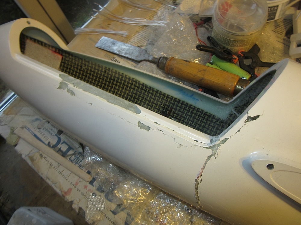 Der Verbinder ist durchgebrochen und der Rumpf hatte einen Riss und einige Abplatzungen im Kabinenbereich.